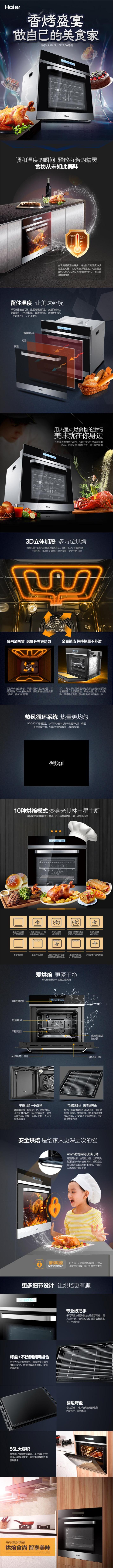 海尔(Haier) (508669)OBT600-10SDA 家用多功能蒸烤箱 精准控温 大容量 56升嵌入式烤箱