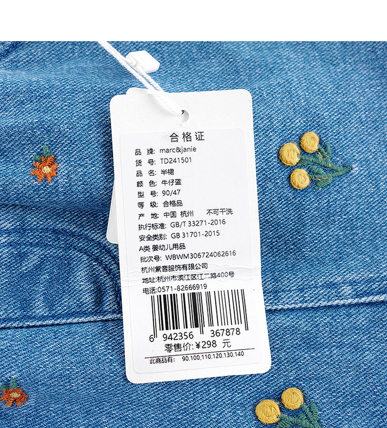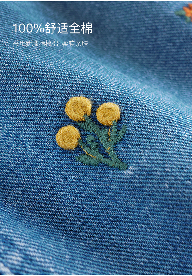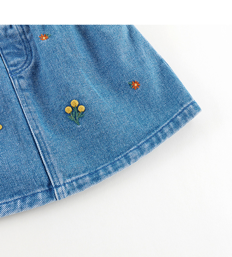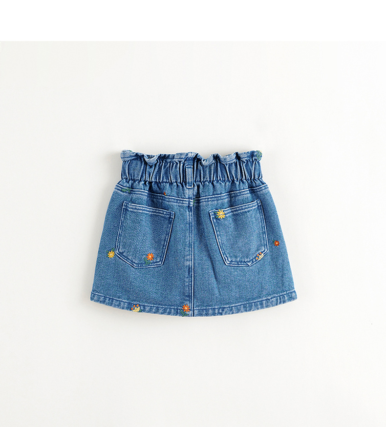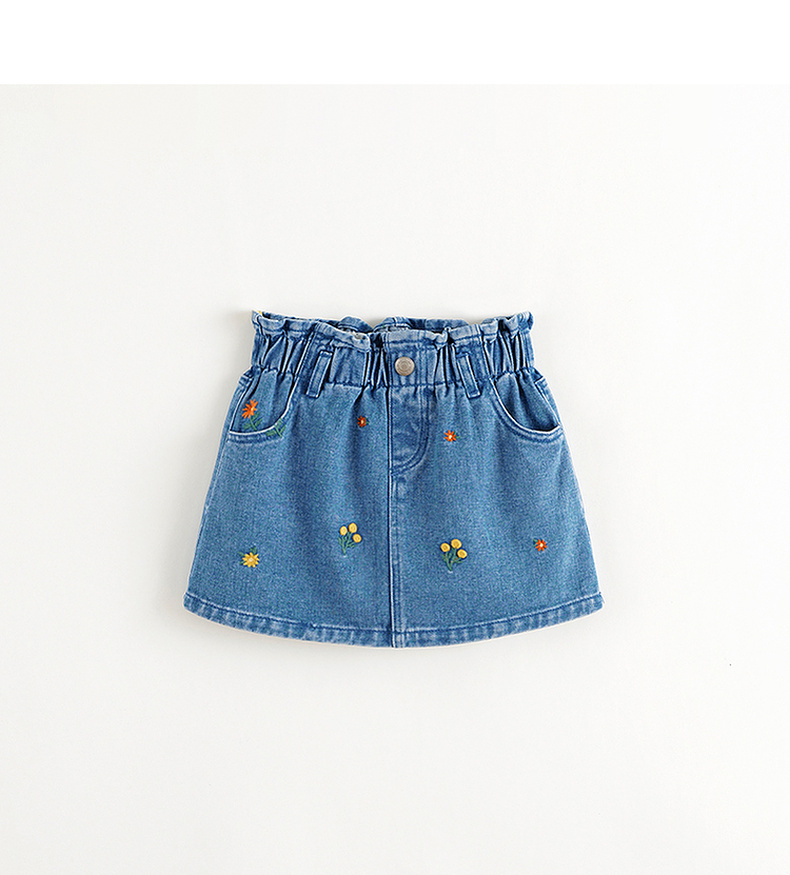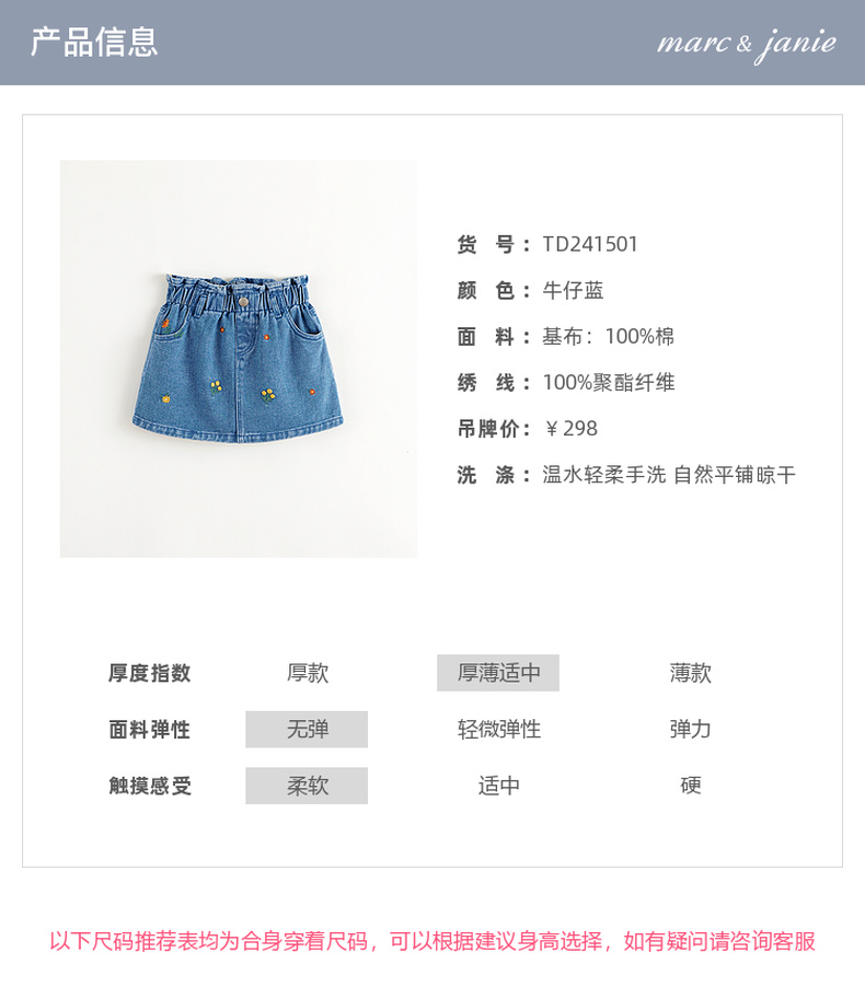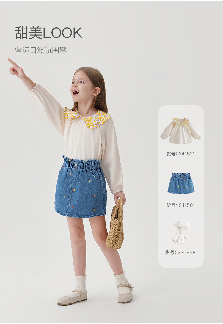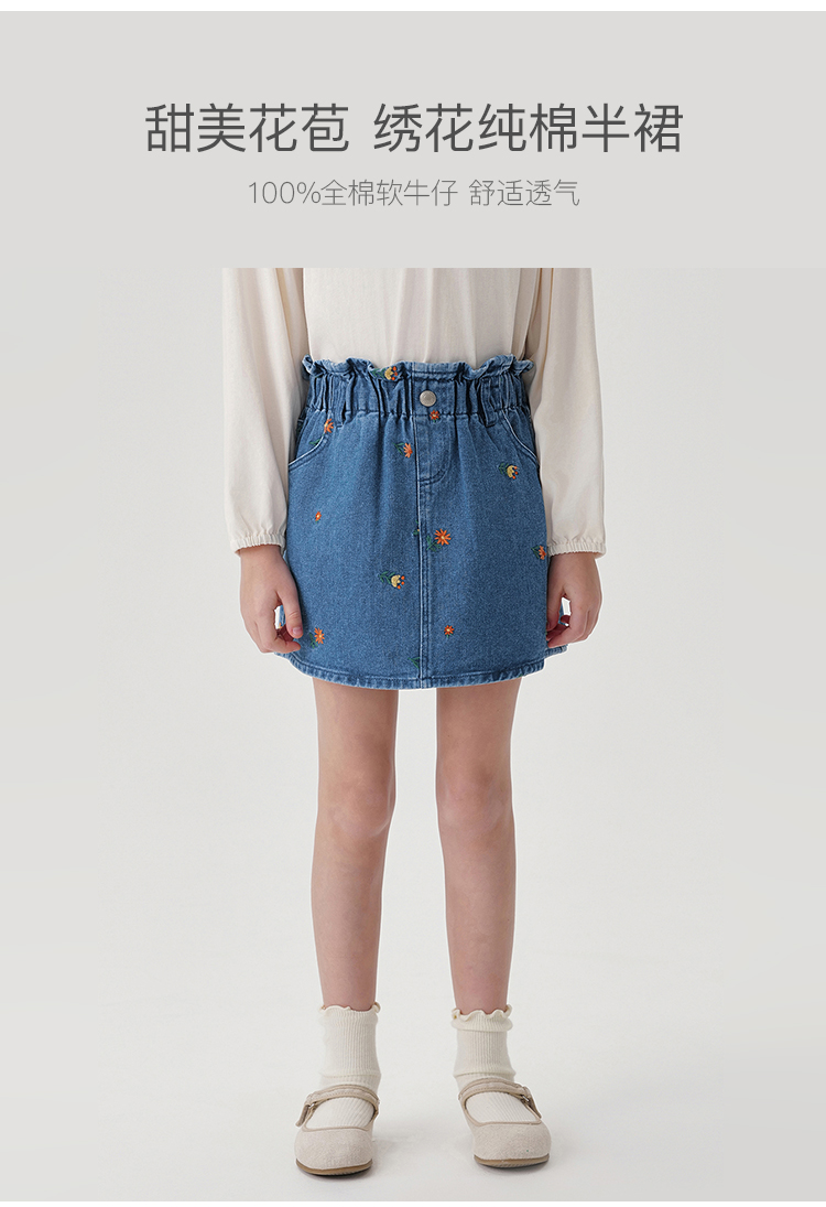 马克珍妮女童花边腰绣花牛仔半身裙儿童短裙秋装裙子新款241501