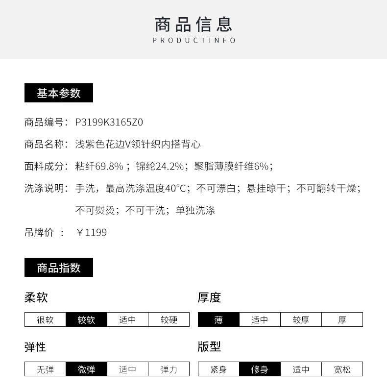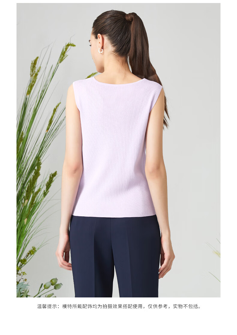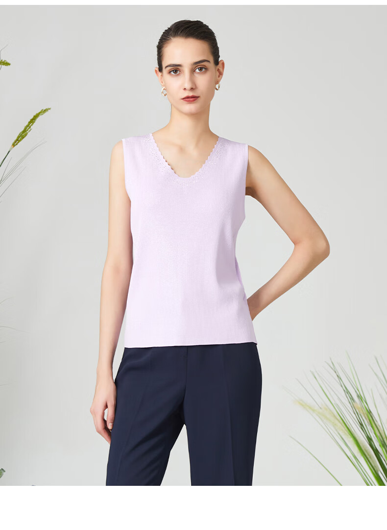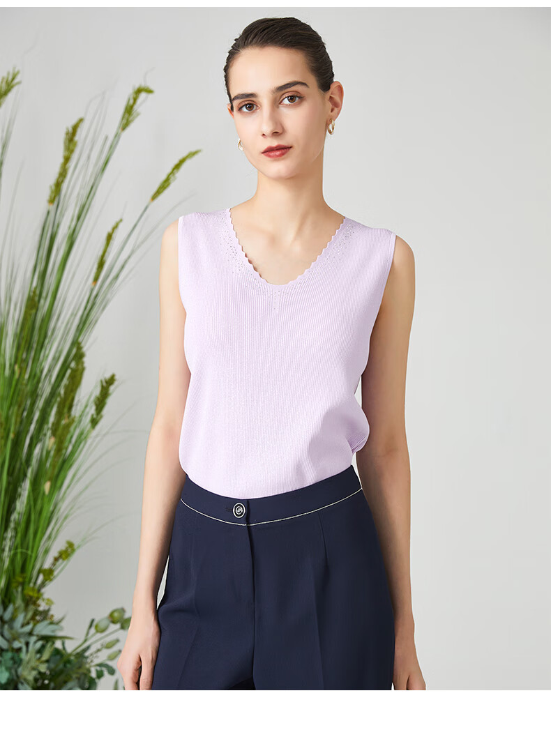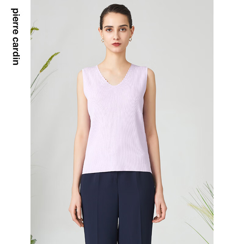 皮尔卡丹女装背心吊带简约百搭浅紫色通勤针织内搭P3199K3165Z0