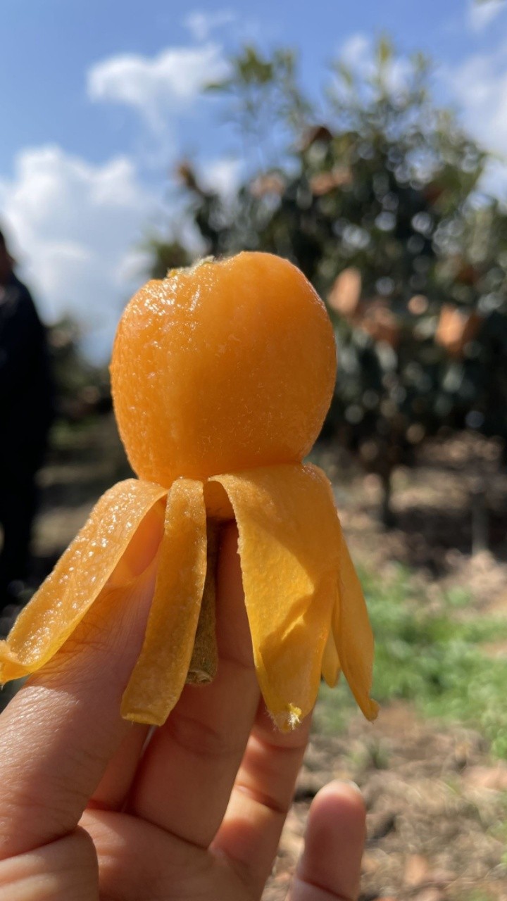 全部自然9成树熟才采摘,枇杷皮很薄,表面绒毛摩擦掉后容易氧化发黑,运输需要特别用心,每次采摘都要及时套上网套保护。
