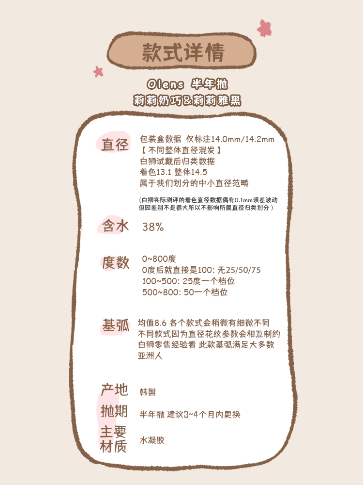 Olens半年抛 Lily系列·莉莉奶巧&莉莉雅黑· 【不同整体直径混发】| 14.0mm/14.2mm中小直径