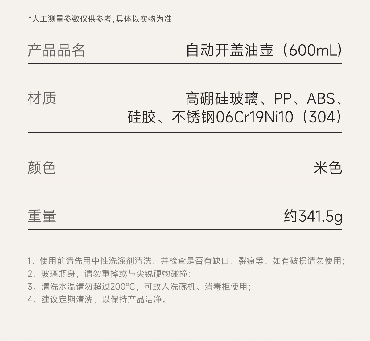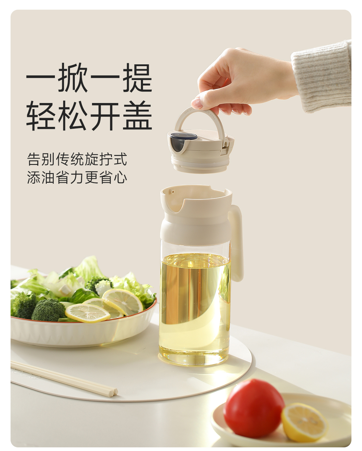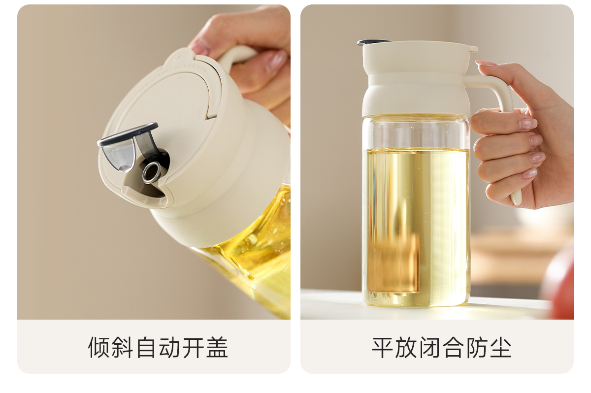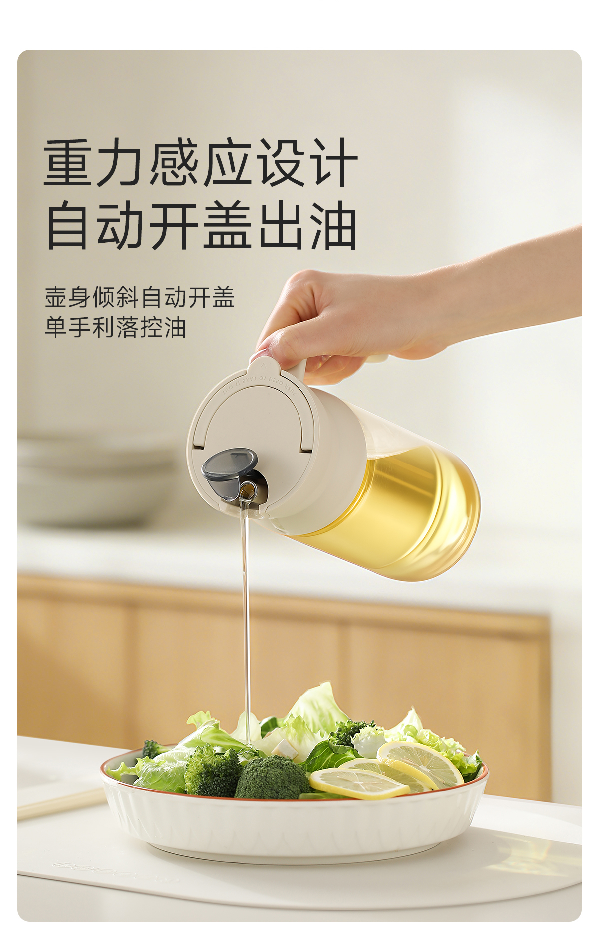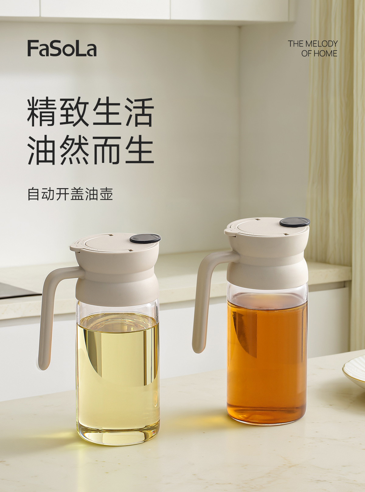 FaSoLa油壶家用厨房酱油醋调味料瓶不挂油防漏玻璃油罐自动开盖油壶