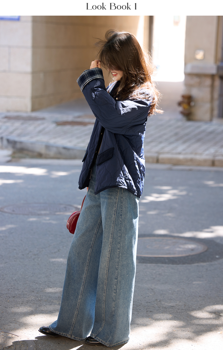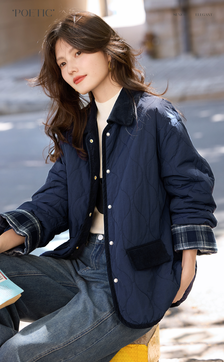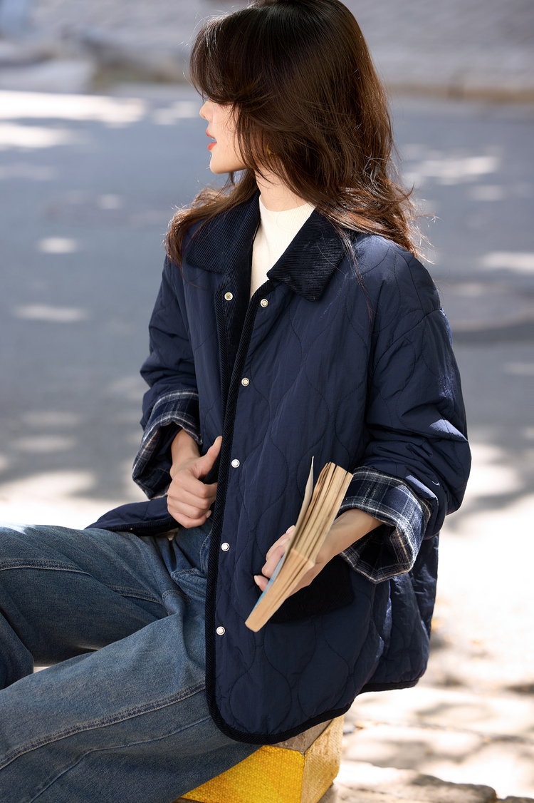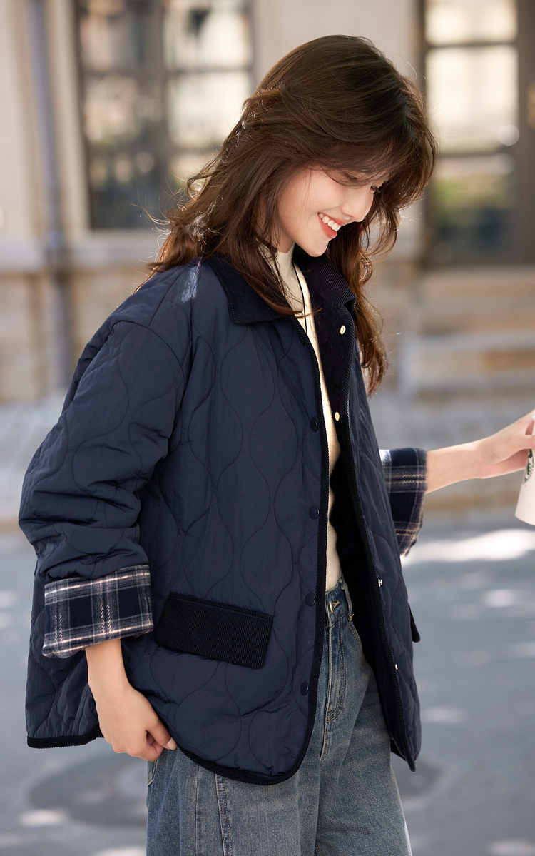 【周末秒杀】熙世界巴恩工装风菱格棉服短外套女2025秋冬新款宽松保暖翻领棉衣