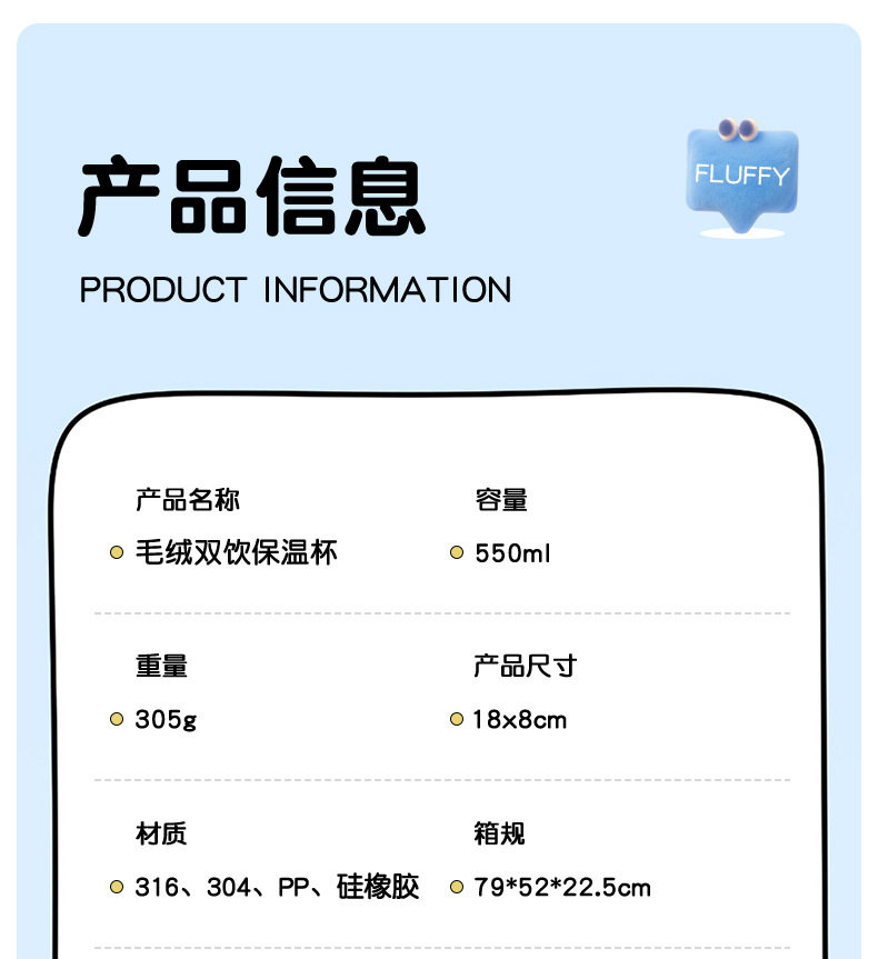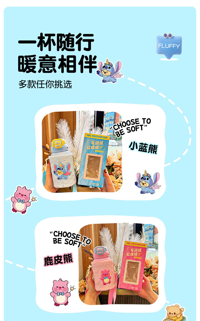 【赠杯套 换季不换杯 冷热都可装的保温杯】缘韵保温双饮杯550ml 一杯两用 开学季儿童保温杯毛绒公仔杯套 316不锈钢水杯 学生上学喝水 健康饮水~