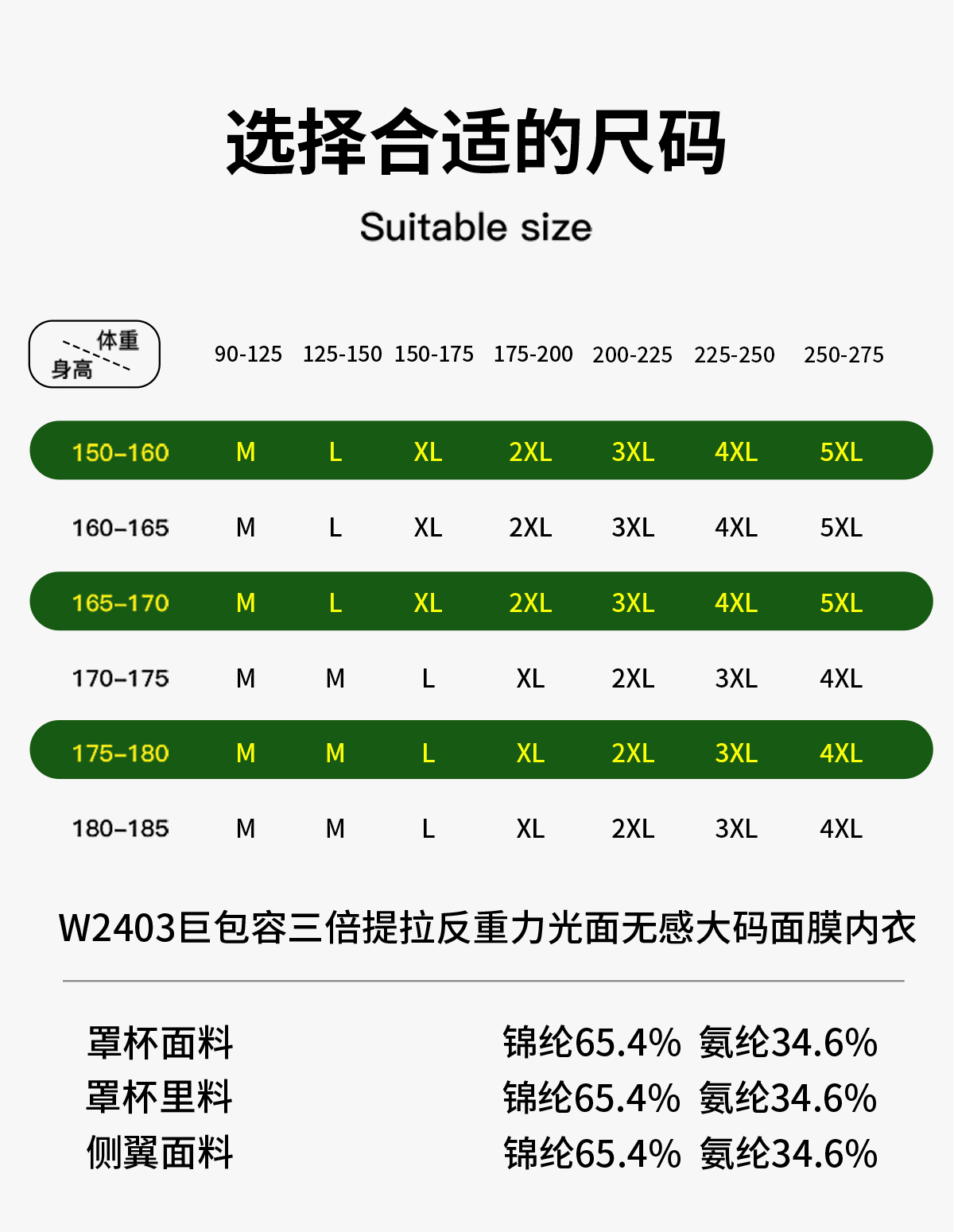 2026年新款巨包容三倍提拉反重力光面无感大码面膜内衣W2403-1(组合需要自选颜色可联系客服备注)
