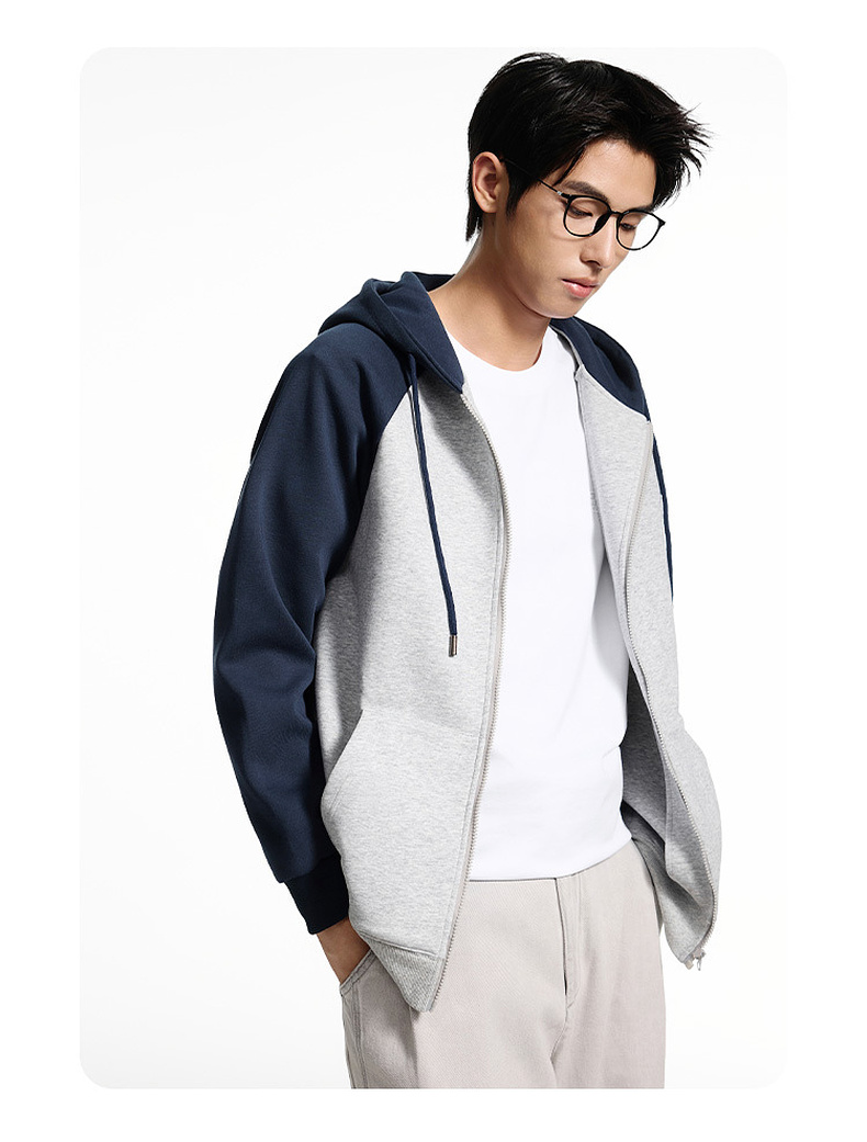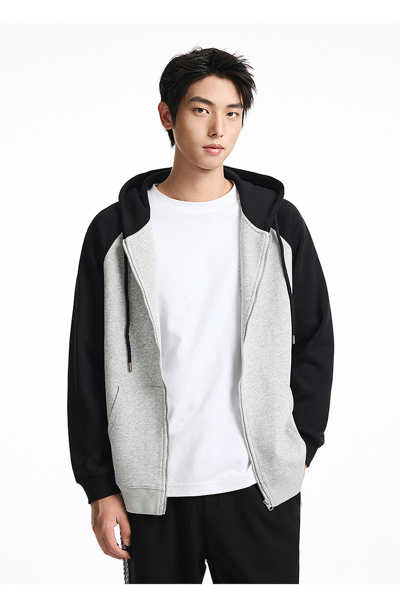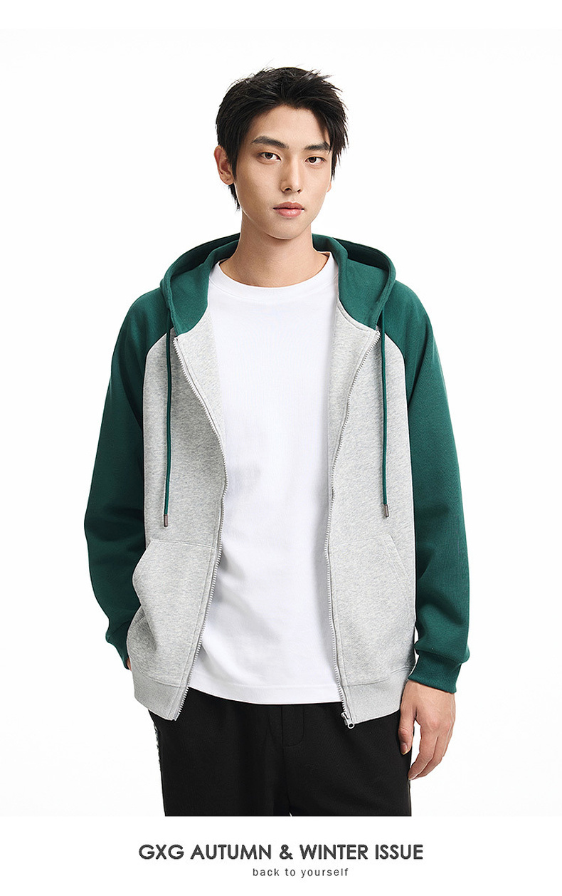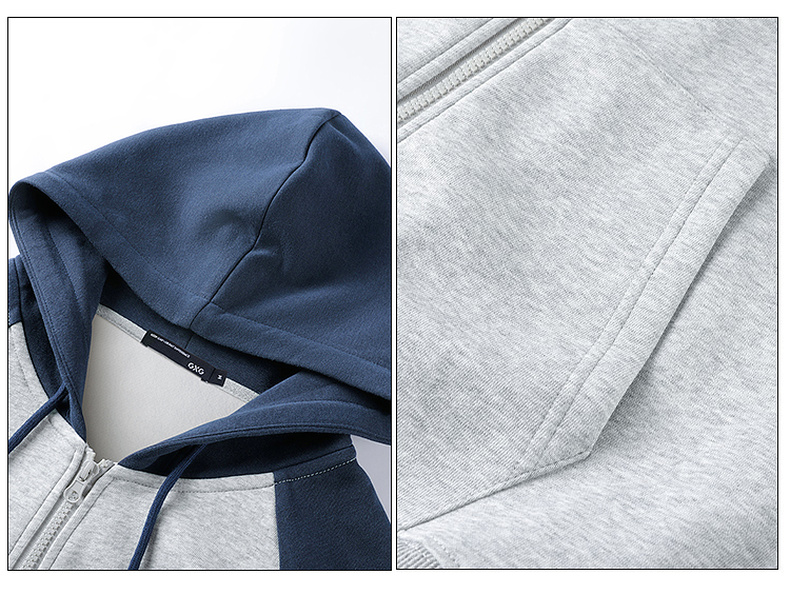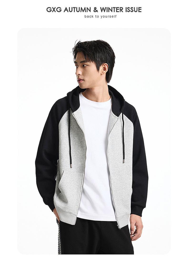 GXG男装秋季时尚潮流撞色休闲上衣男式宽松运动连帽开衫卫衣K&C