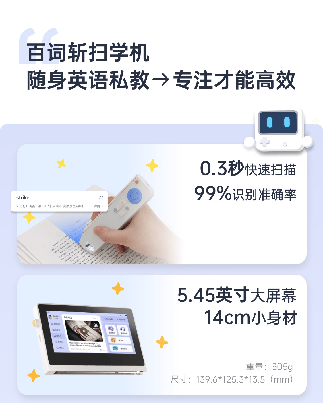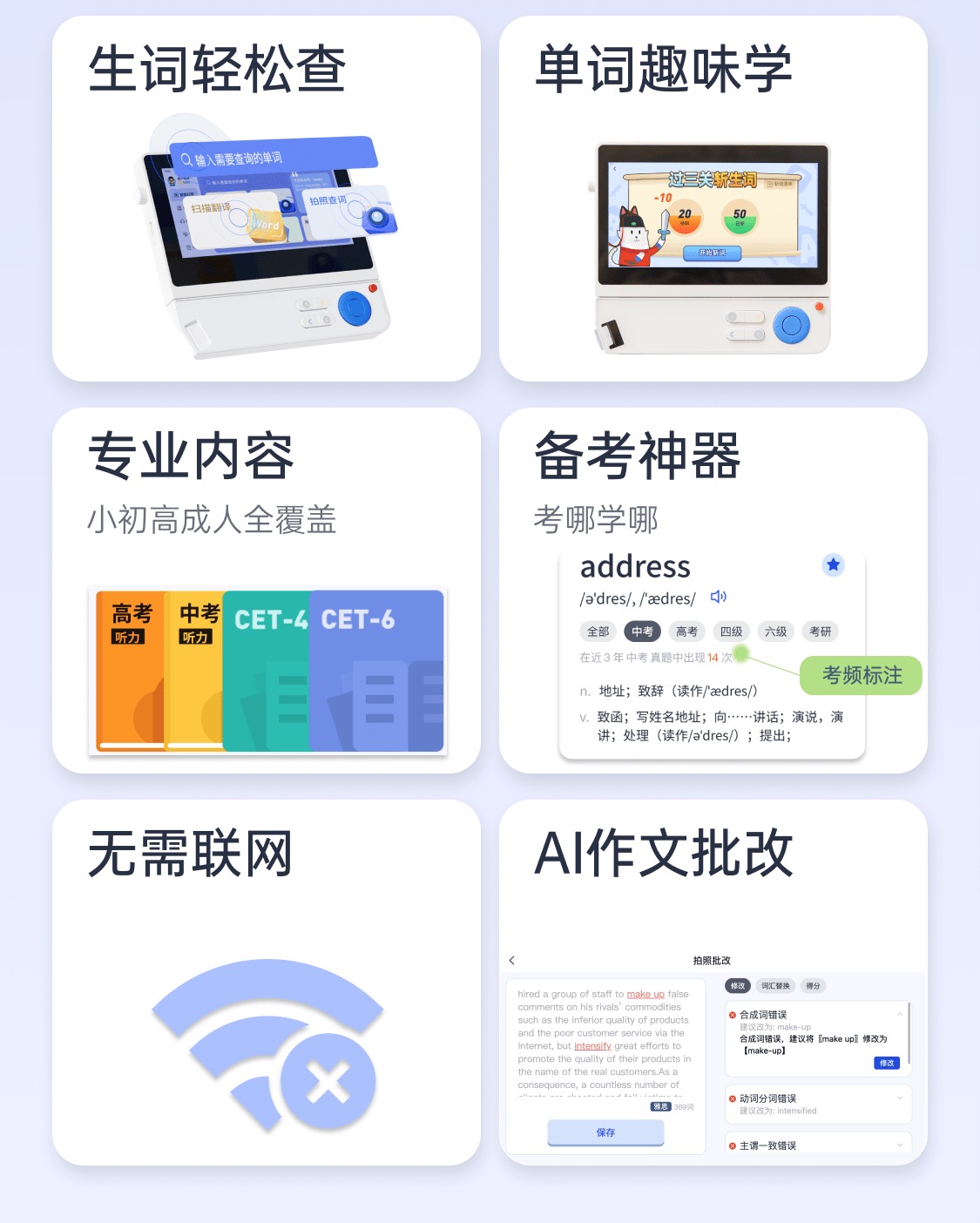 双十二热销【百词斩英语扫学机】,百词斩单词机 | 高效记忆单词 | 没有网络不用手机也能高效背单词 | 采用类纸护眼屏 | 强大词库,拥有中小学、四六级、托福雅思海量单词