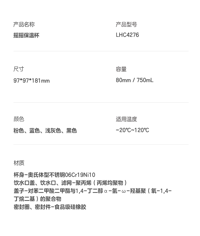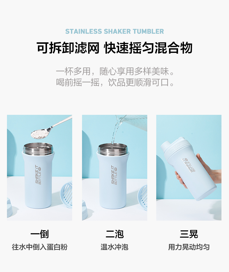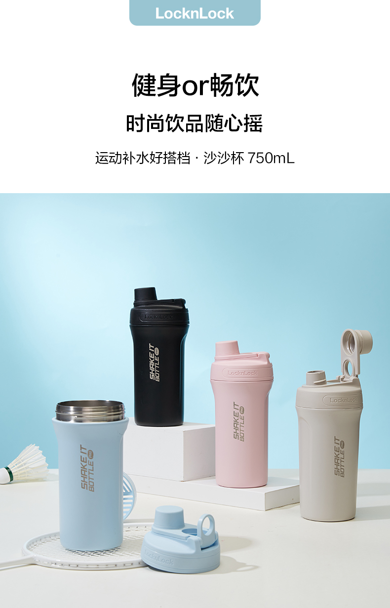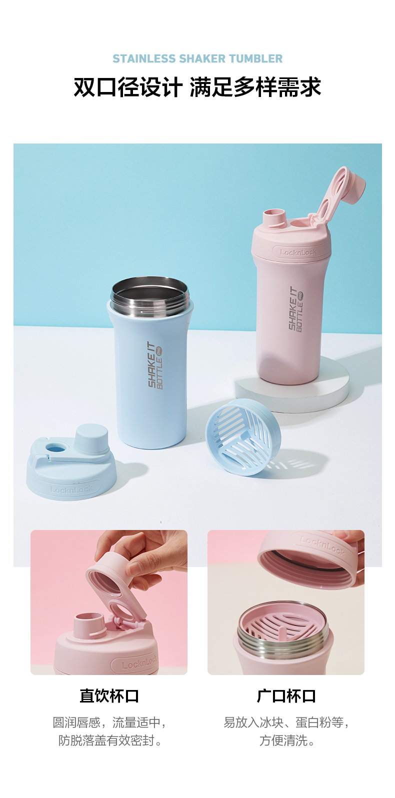 乐扣乐扣摇摇杯保冷杯纯色简约女生运动健身蛋白摇粉杯男户外
