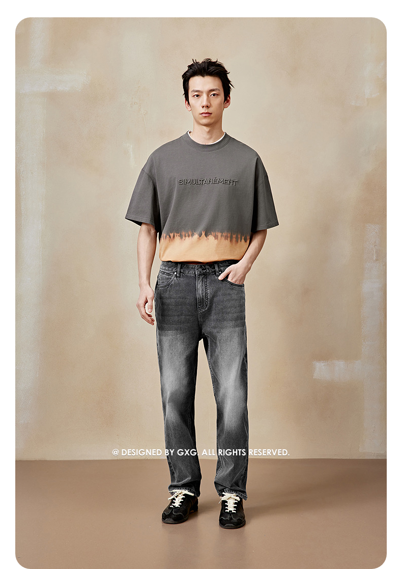 GXG男装 直筒渐变设计水洗牛仔裤休闲裤弹力长裤 2025夏季热卖*