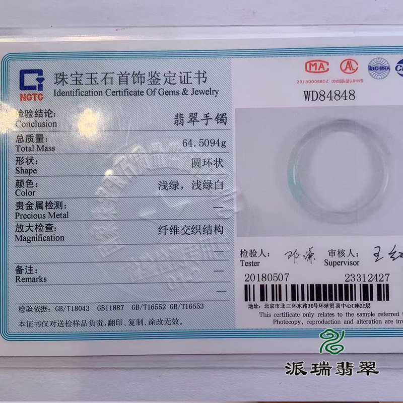 派瑞翡翠 翡翠手镯 糯种 浅绿色