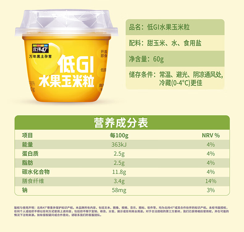 【秒杀】北纬47度低GI水果玉米粒60克*10杯装