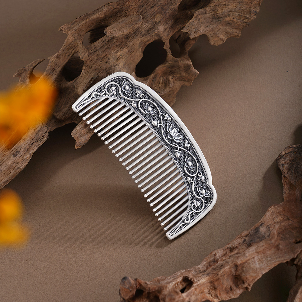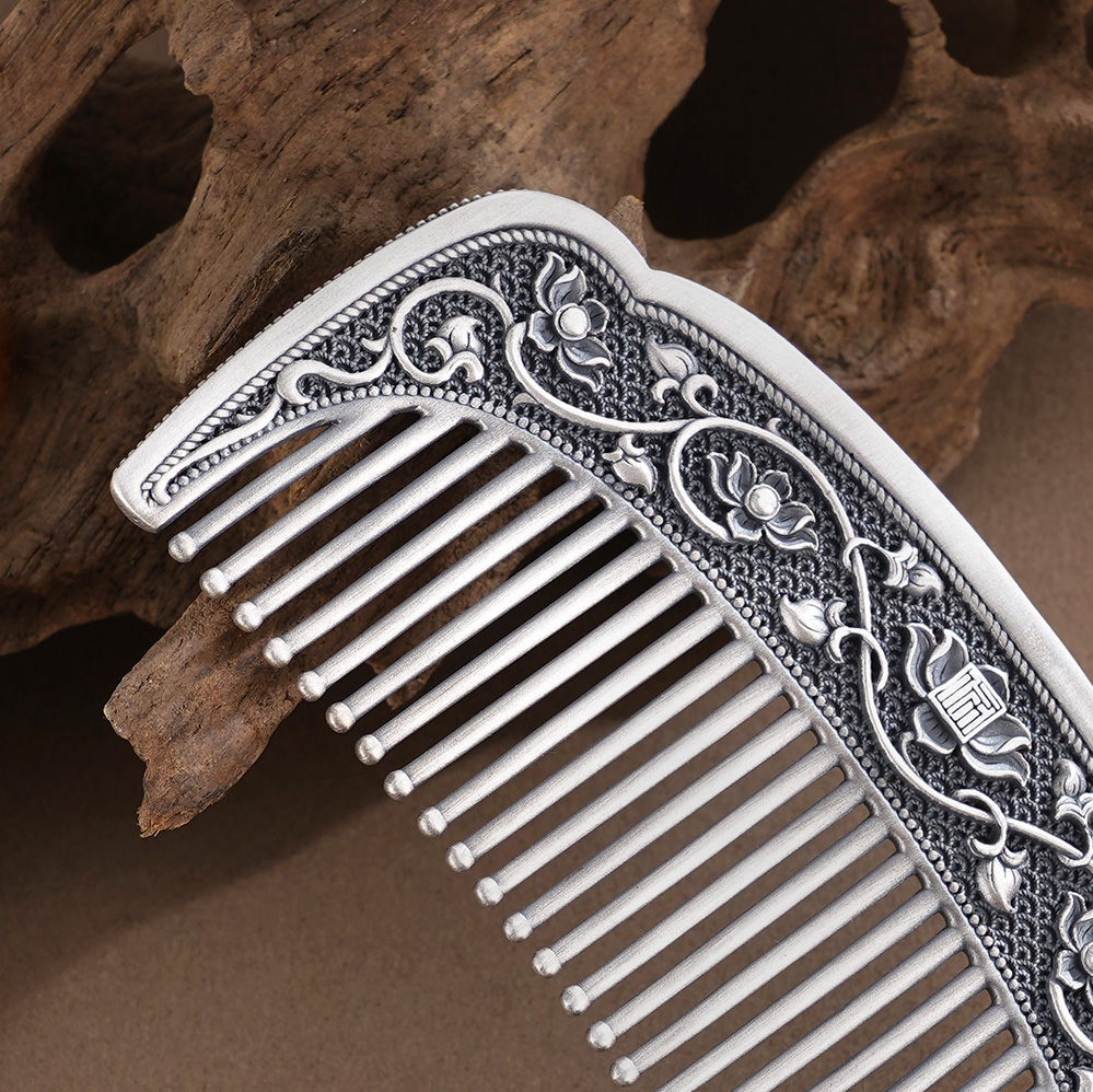子佩集【满池娇】银S999梳子【HSSZ006】双色原创作品莲花卷草纹2601