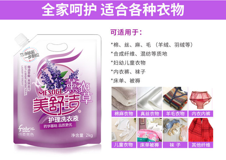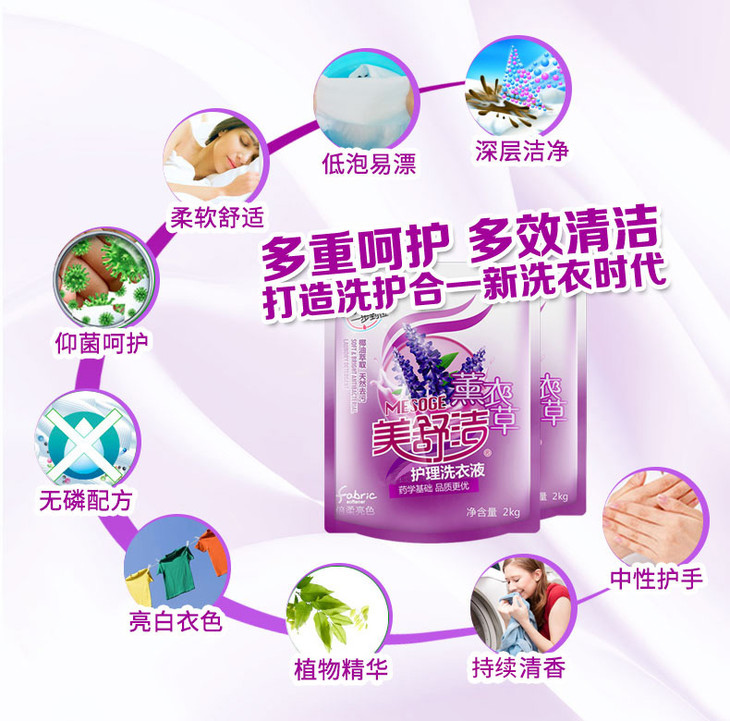 美舒洁洗衣液薰衣草香2kg瓶装家庭装持久去渍低泡家用促销组合装 2kg