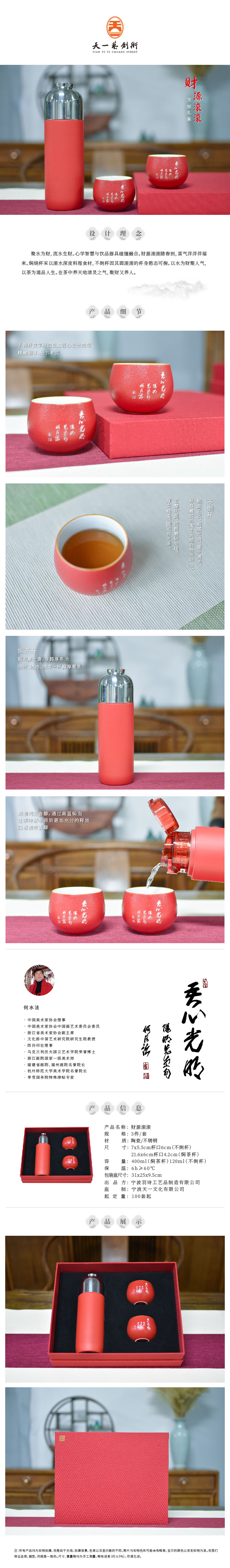 羽诗制造出品 财源滚滚套装焖茶杯不倒杯文创礼盒