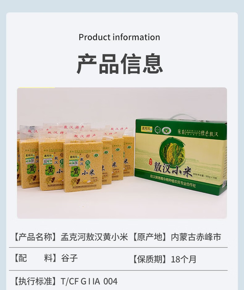孟克河 有机敖汉小米礼盒5kg(500g*10)