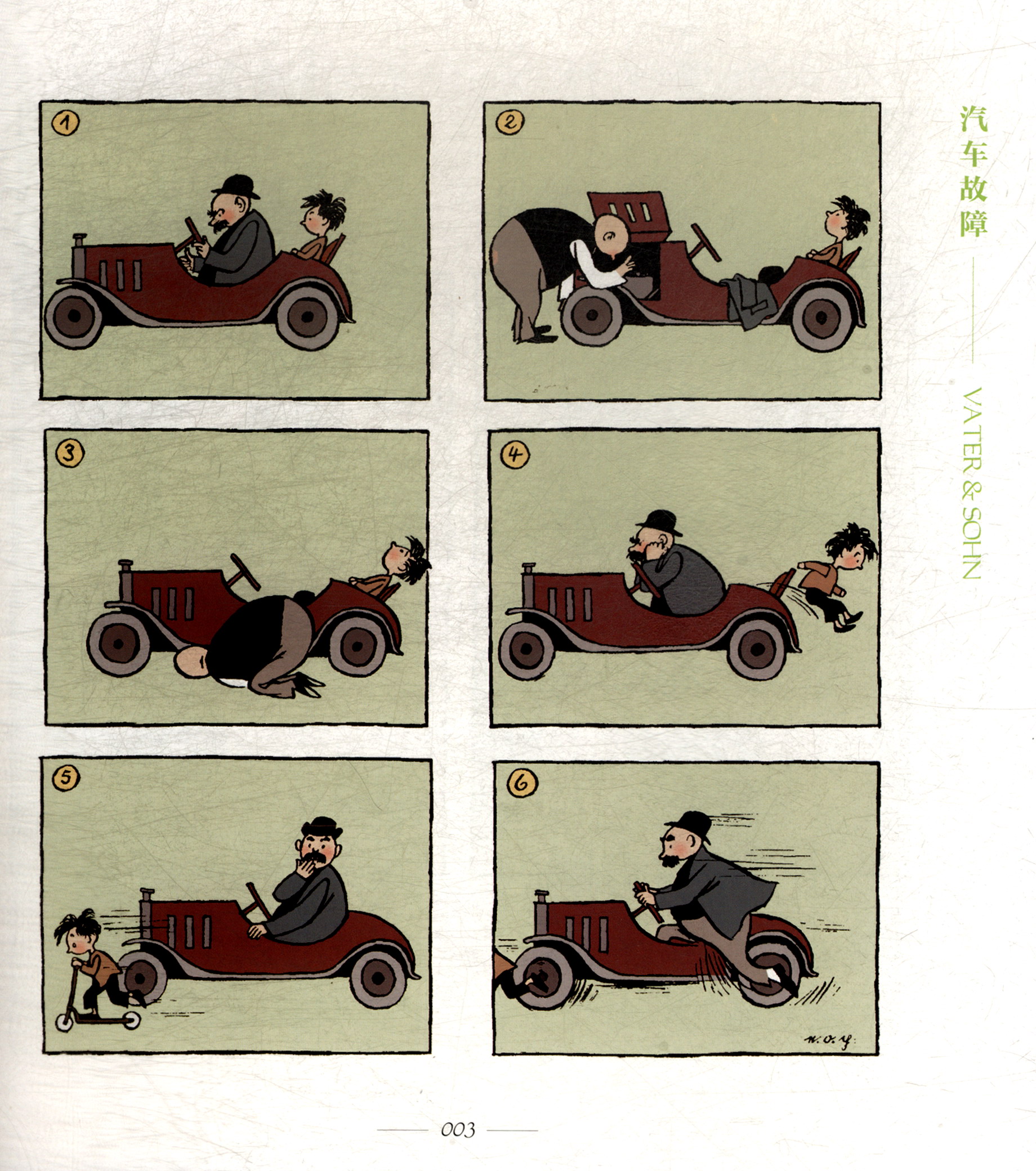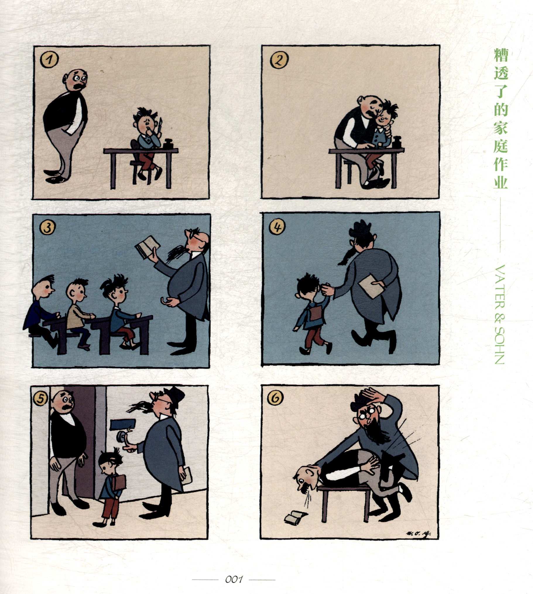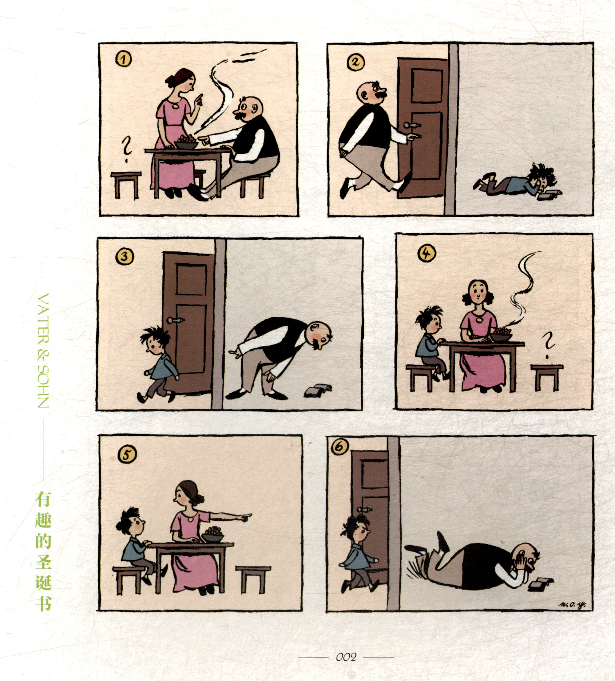 1934至1937年,笼罩在纳粹政府阴霾之下的德国,在白色恐怖的夹缝中诞生出了一部伟大的幽默作品——漫画家埃·奥-卜劳恩(E.O.Plauen)连载于“柏林画报))上的长篇连环漫画《父与子》。一个大腹便便的大胡子爸爸,和一个顶着一头乱发,四处调皮捣蛋的儿子,漫画中的这对父子没有一句对白,但他们却为无数德国人带去了笑声。父子间爆笑又温馨的小故事,藏在幽默和奇思妙想之下的那份无言的爱与温情,为那个时代的人们提供了一个治愈伤痛,忘却恐惧的港湾。