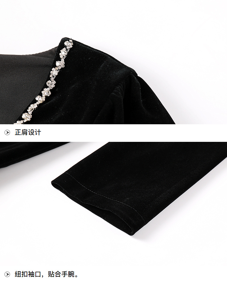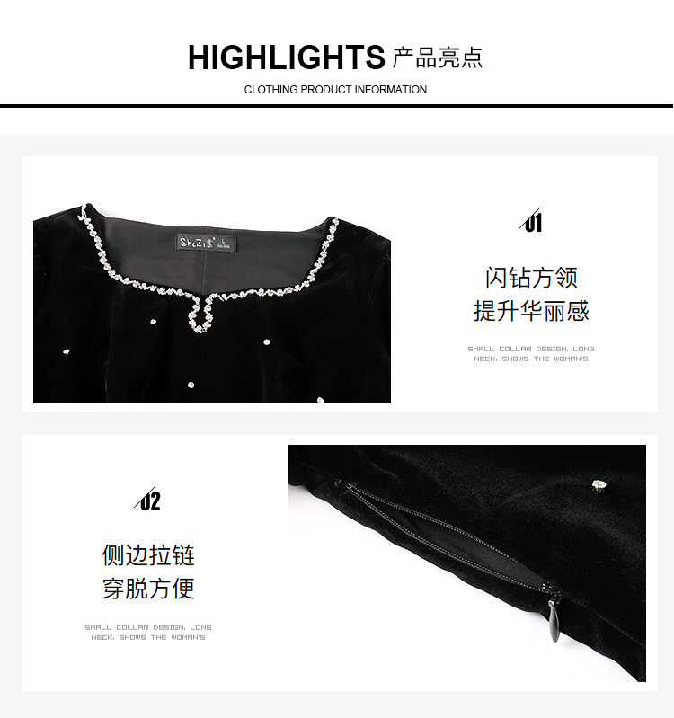 奢姿2025秋季大码胖妹妹专属镶钻丝绒长袖连衣裙气质优雅小黑裙9953870566