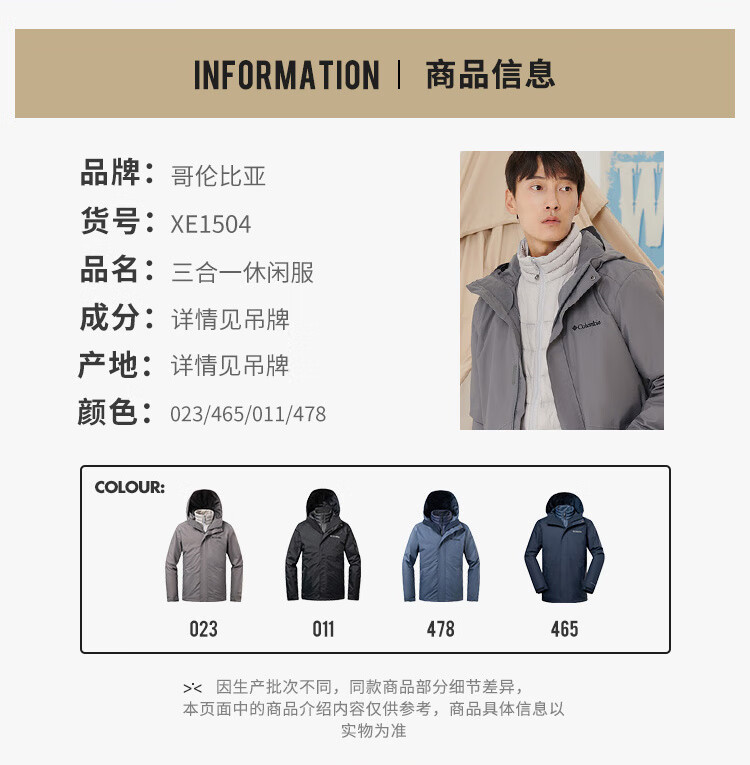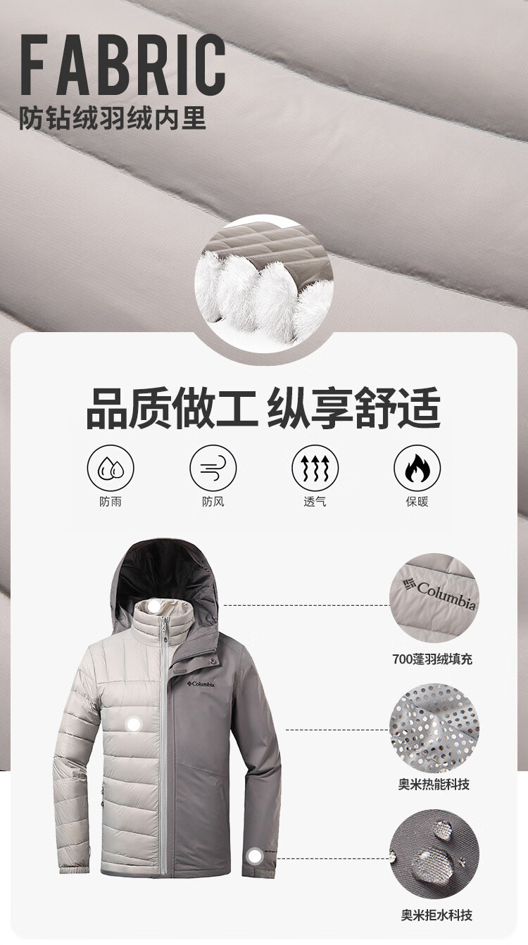 Columbia哥伦比亚三合一男秋冬热能防水700外套XE1504