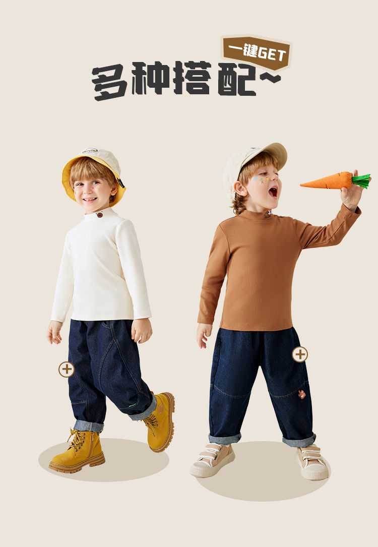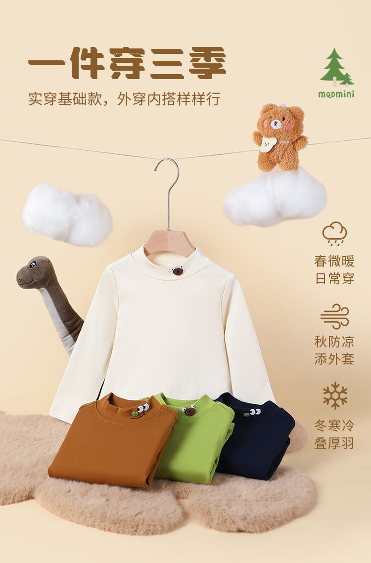 【80-130】【MQDmini】男童春秋半高领打底衫长袖t恤