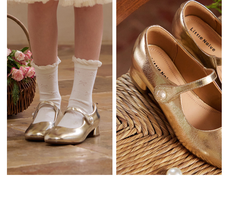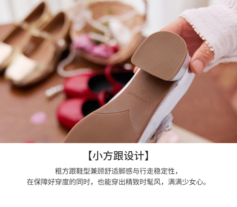 【云优选】Little Naive儿童复古玛丽珍鞋春季甜美时髦单鞋女童公主高跟皮鞋