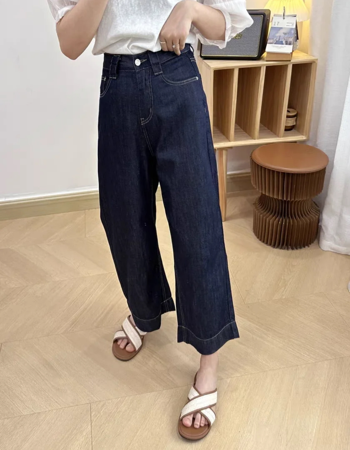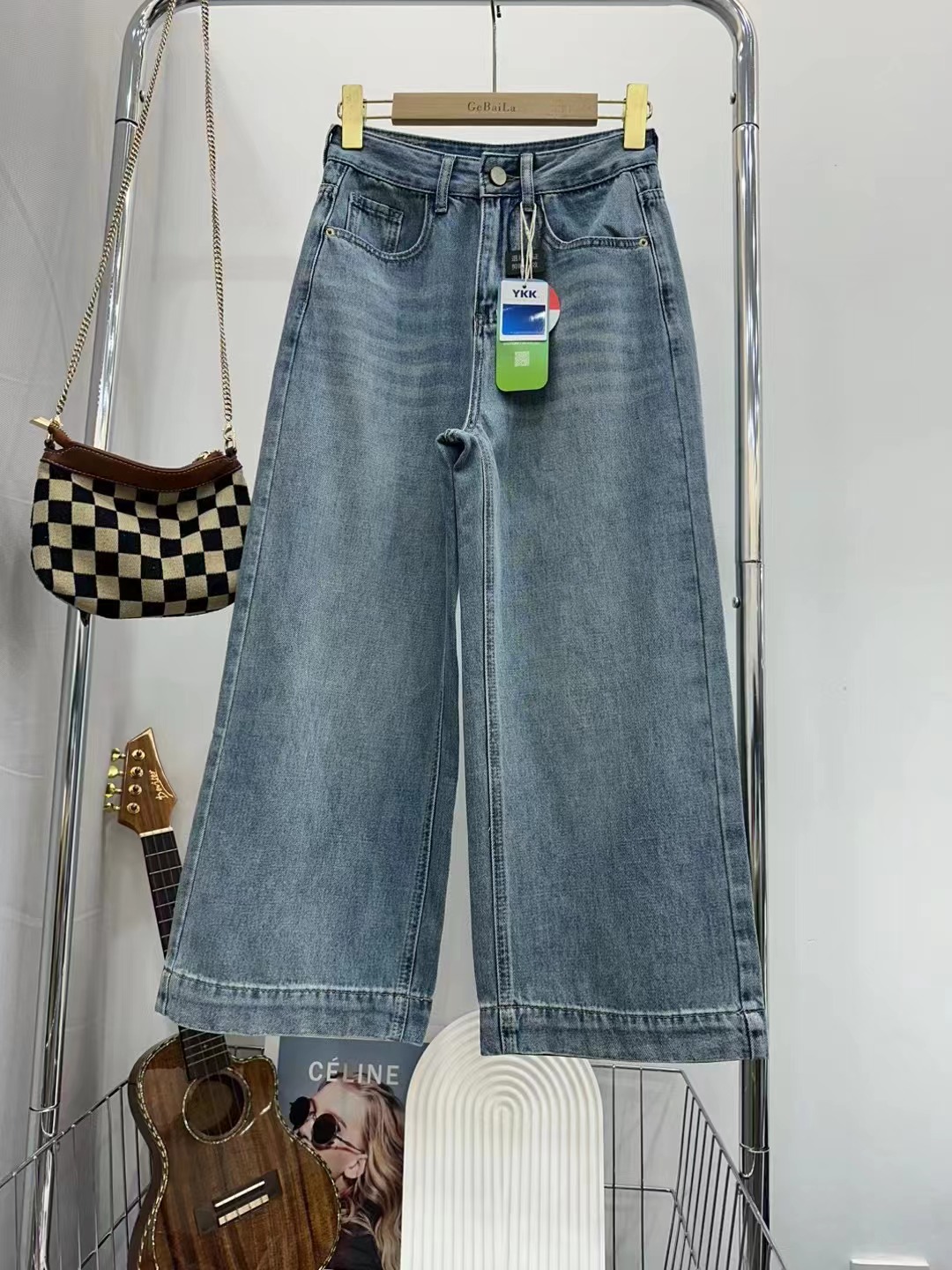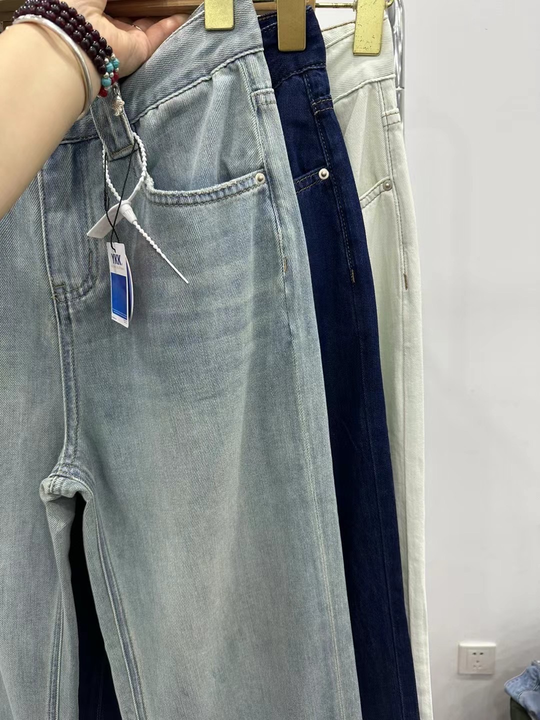 老米优品🎈篙端款!为夏日而生的,莱赛尔天丝牛仔裤《九分直筒微阔腿牛仔奶奶裤》巨舒服,显腿长 ! K240612A