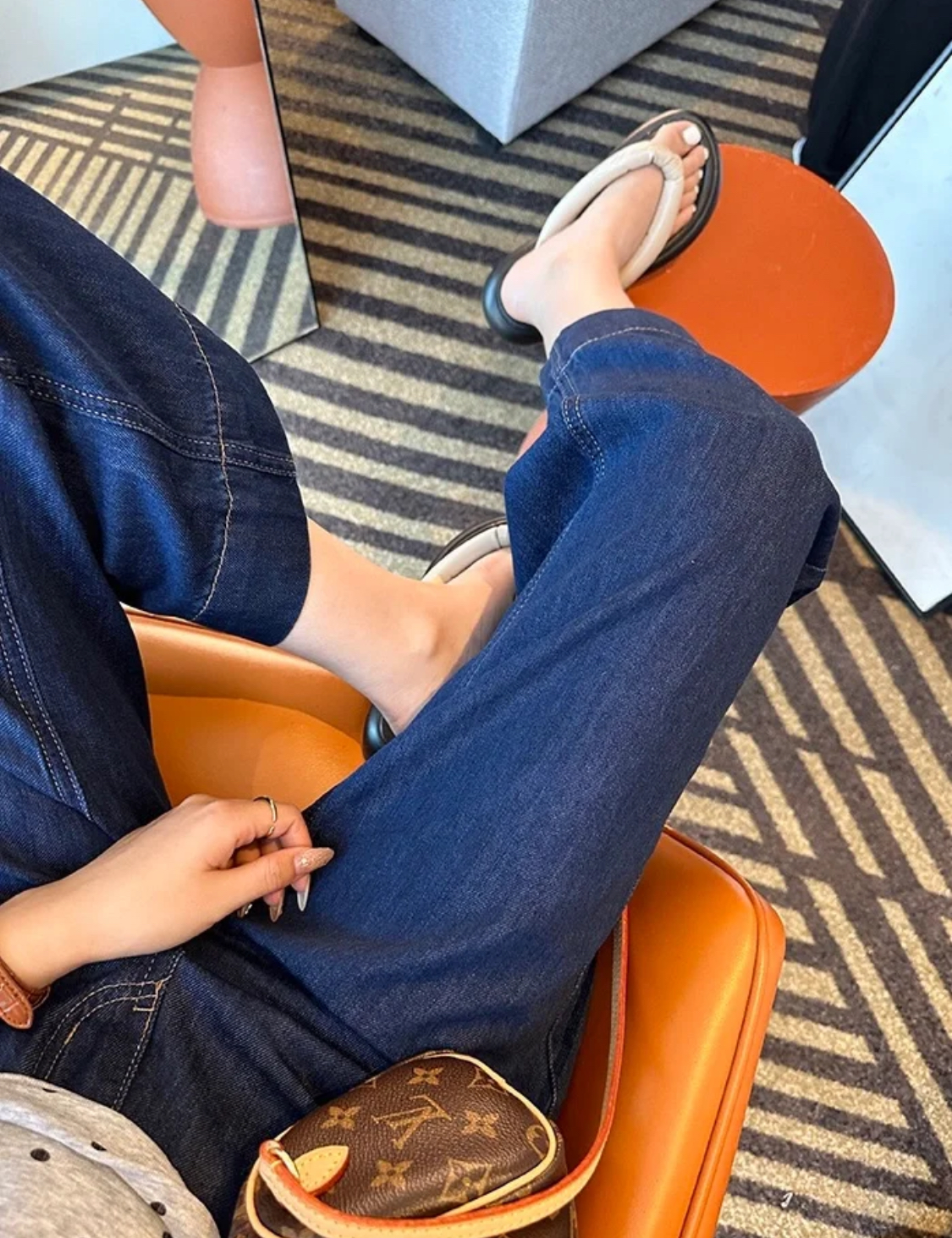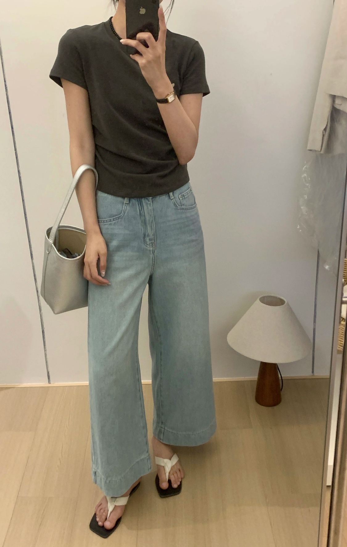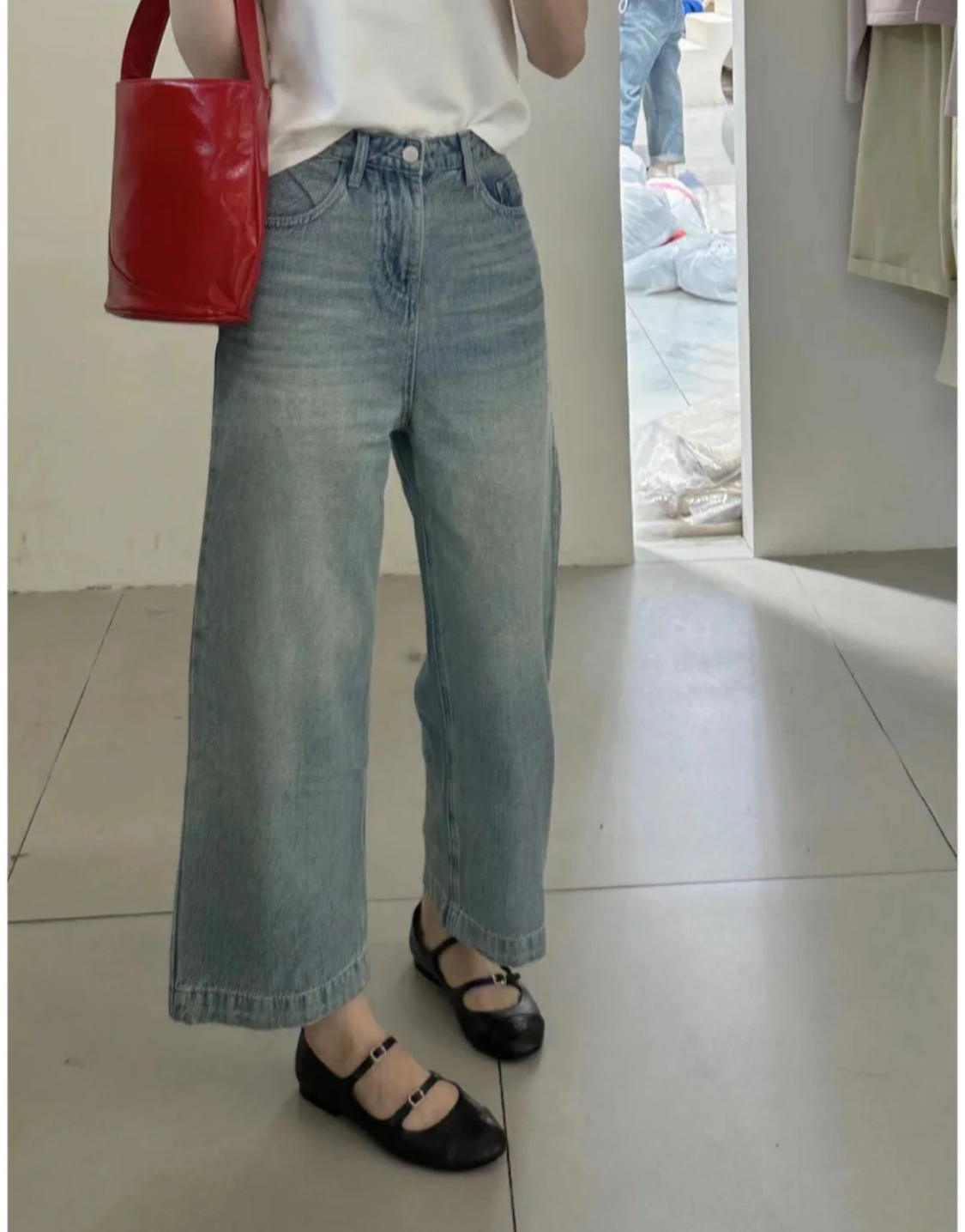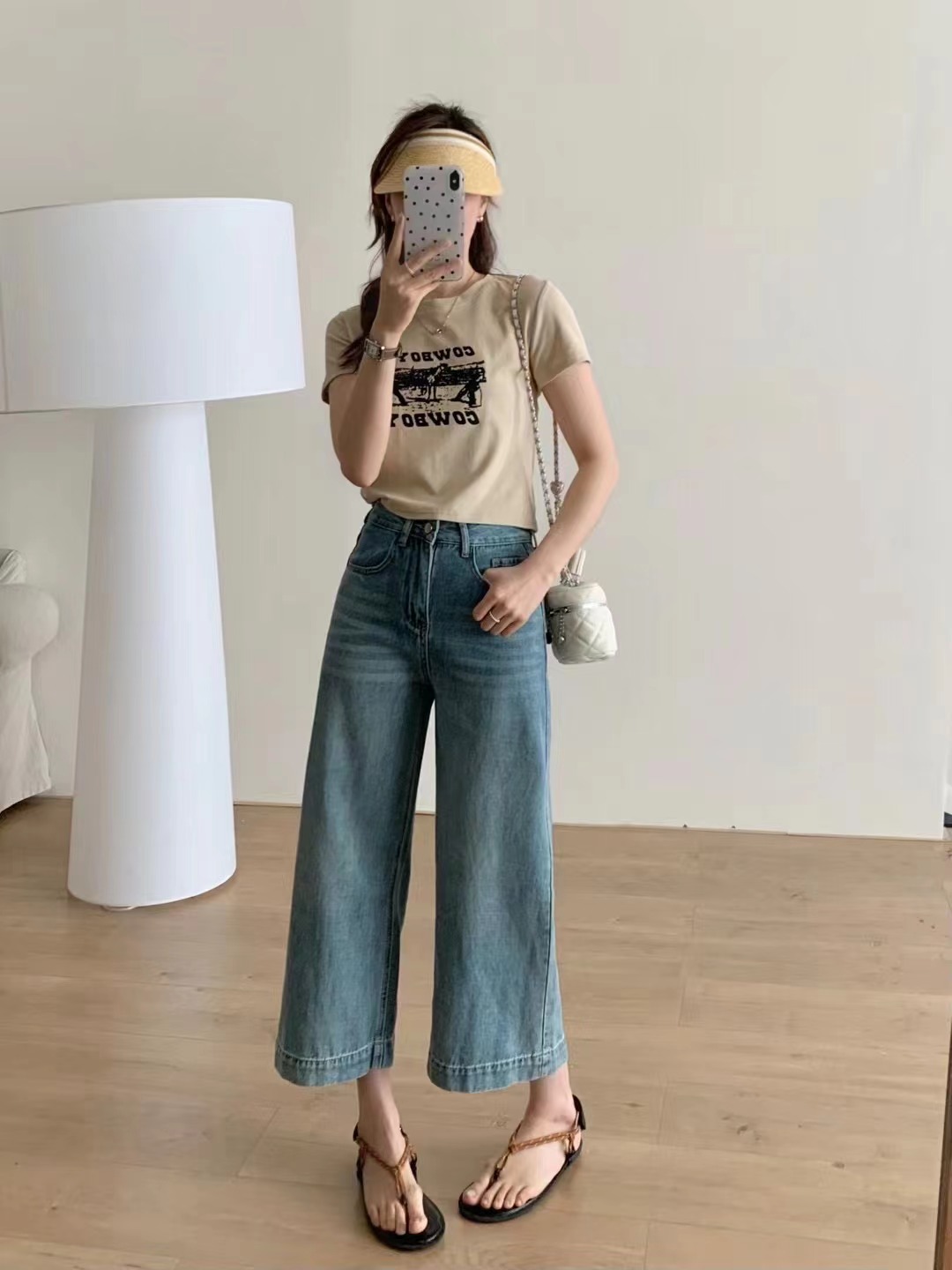 老米优品🎈篙端款!为夏日而生的,莱赛尔天丝牛仔裤《九分直筒微阔腿牛仔奶奶裤》巨舒服,显腿长 ! K240612A