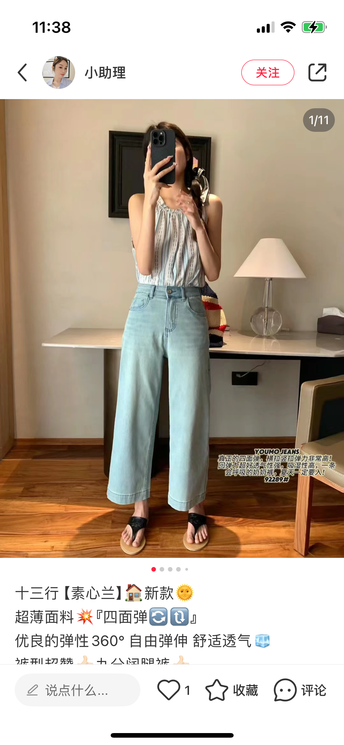 这个直筒奶奶裤款,之前一直有菇凉来问,现在可算出货了!韩里韩气哒慵懒感,九分长度,露出脚踝炒鸡显高,版型特别好看不拖沓,小个子菇凉也友好。而且牛仔面料柔软的不行,含莱赛尔天丝成分,清凉又透气,简直就是为夏天而生的!