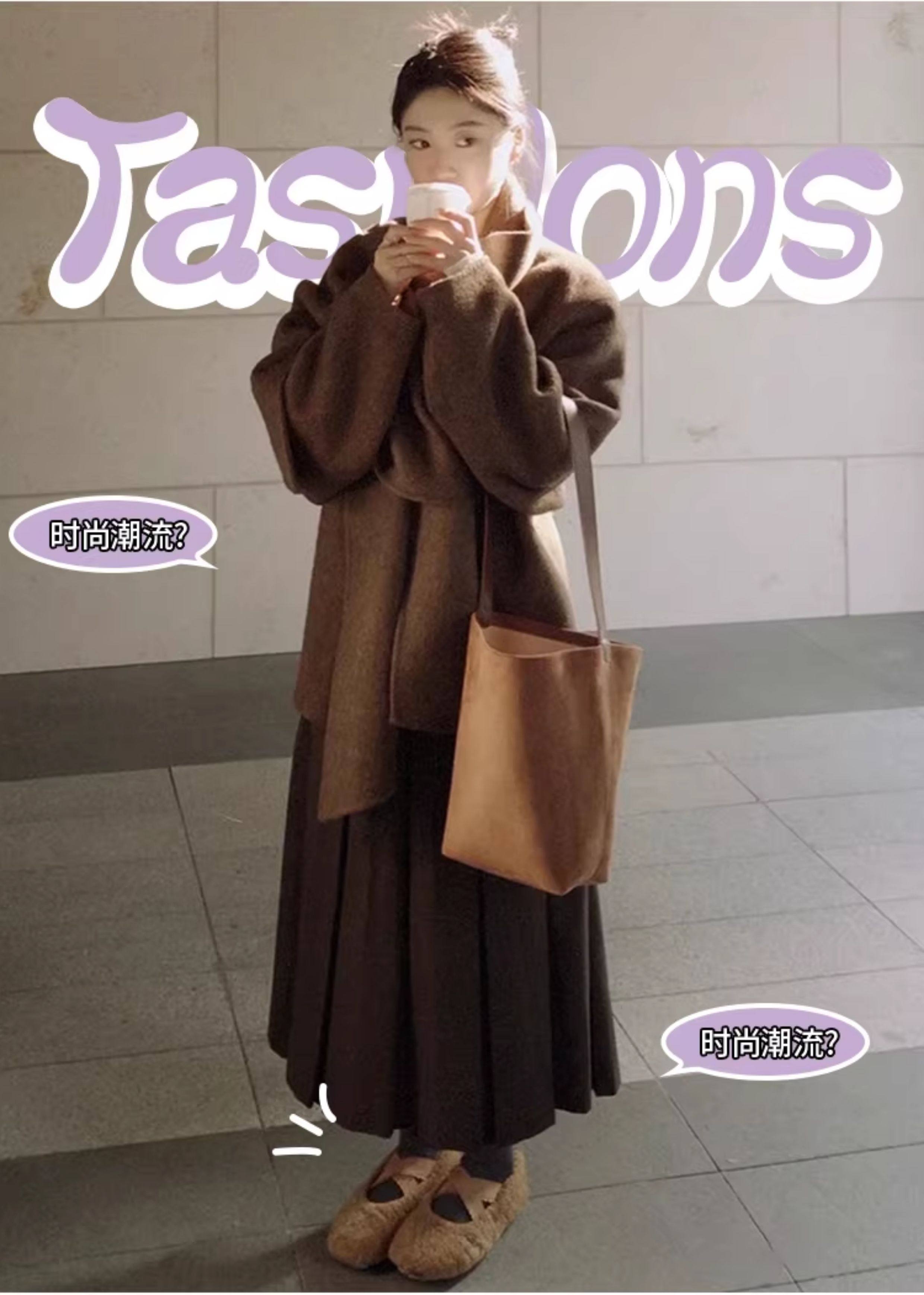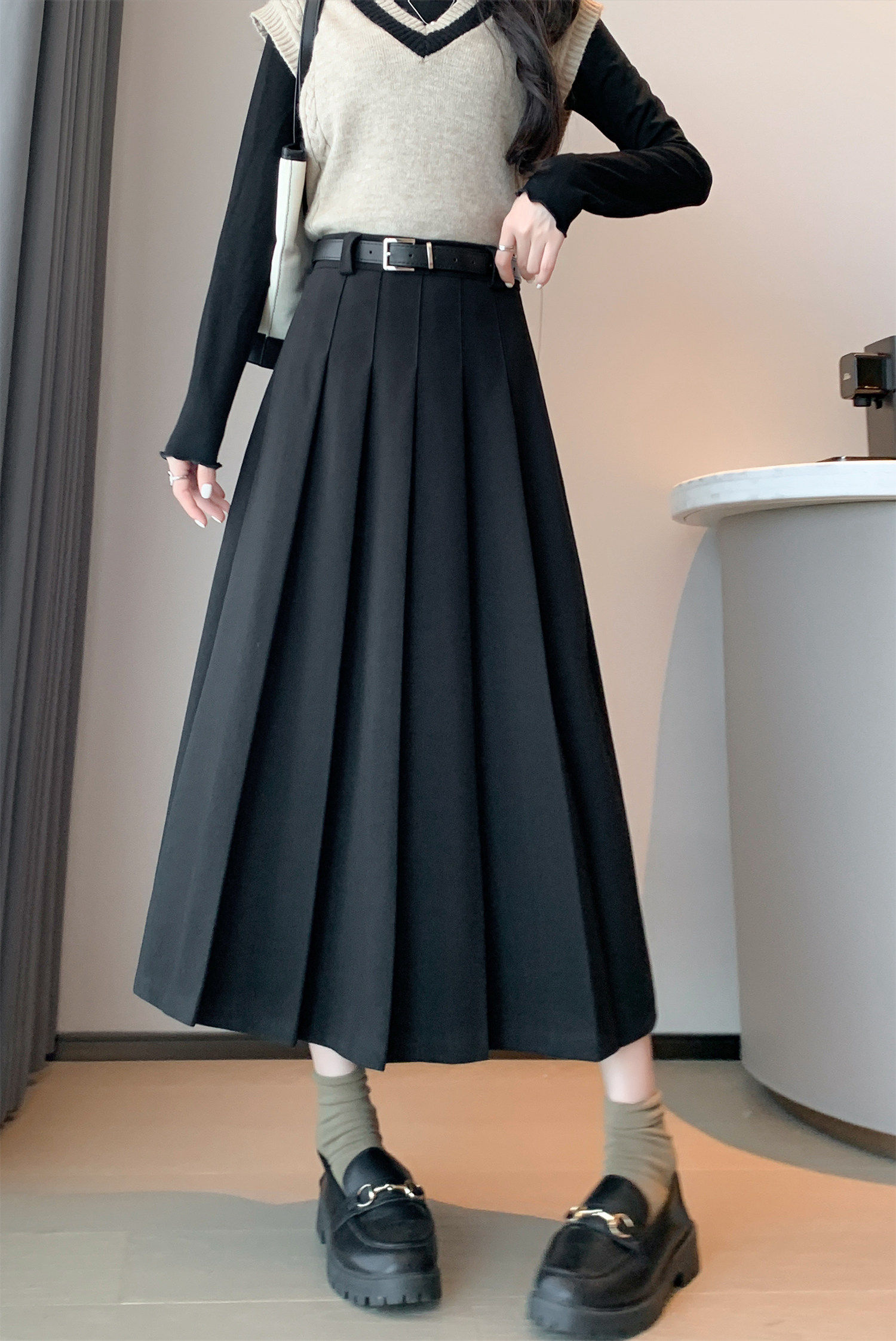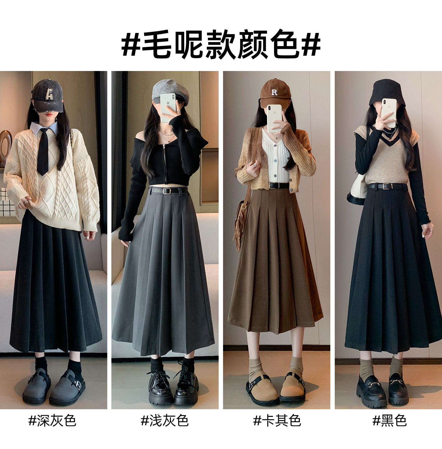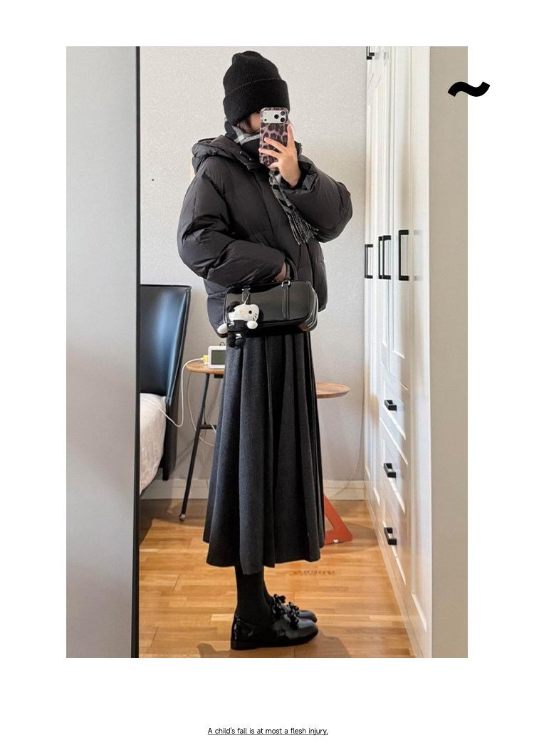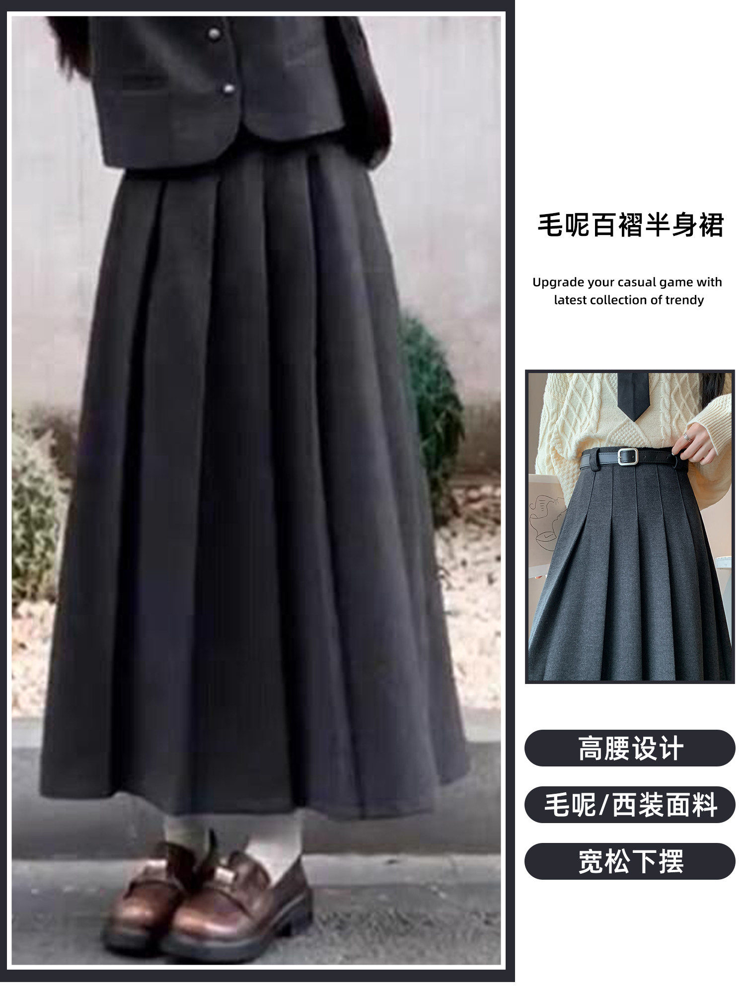 美拉德风毛呢百褶裙女秋冬新款高腰遮胯显瘦压褶a字中长款半身裙聚