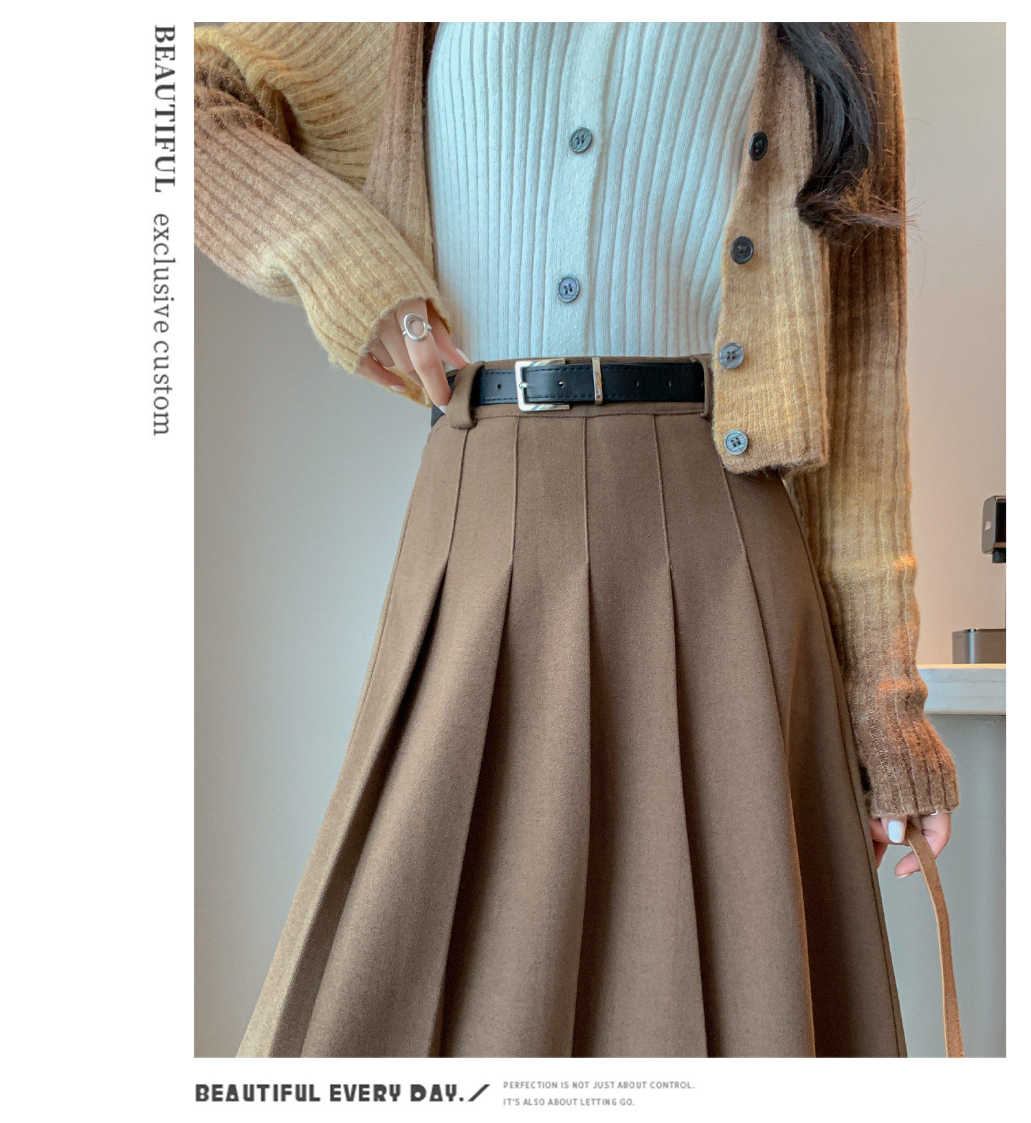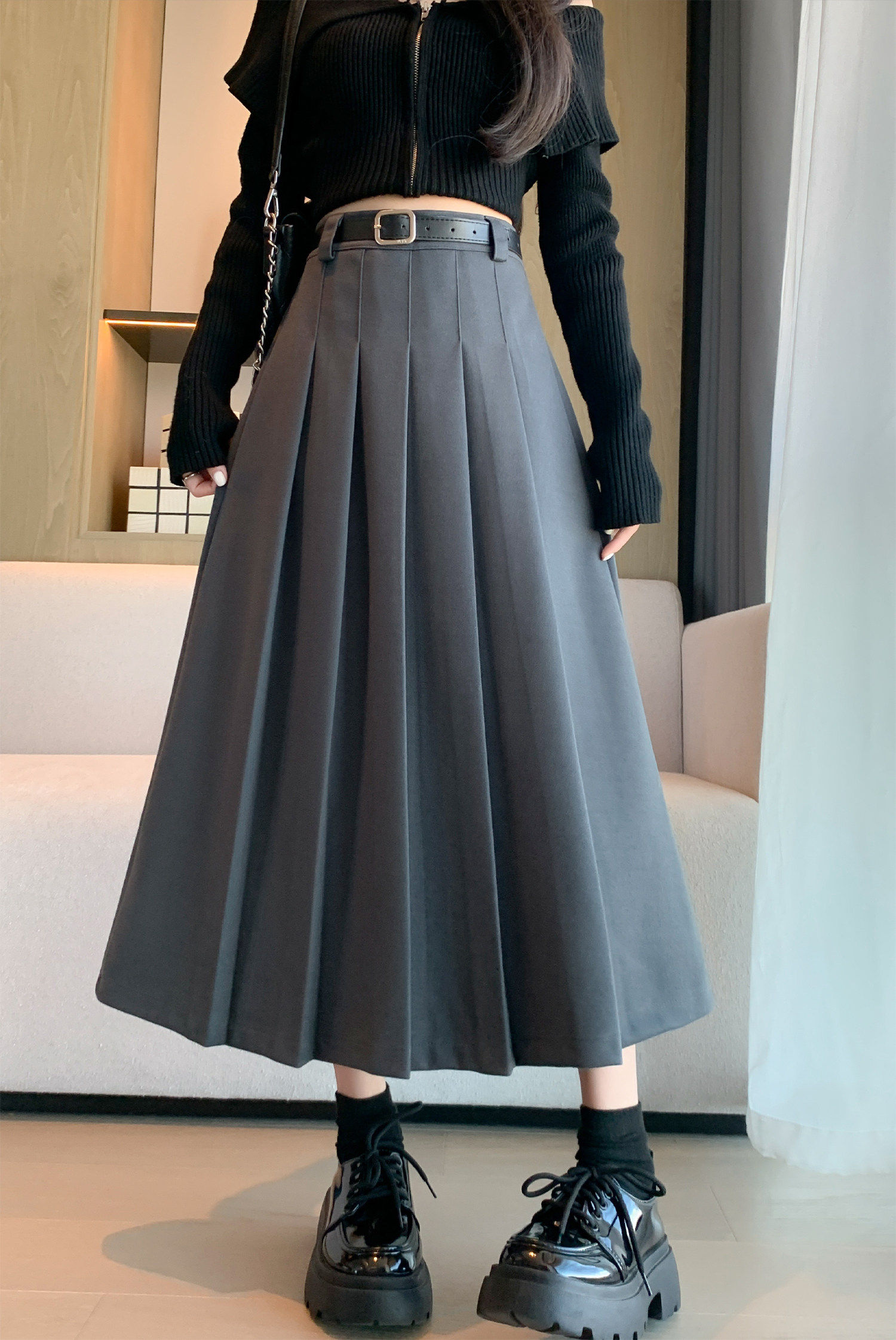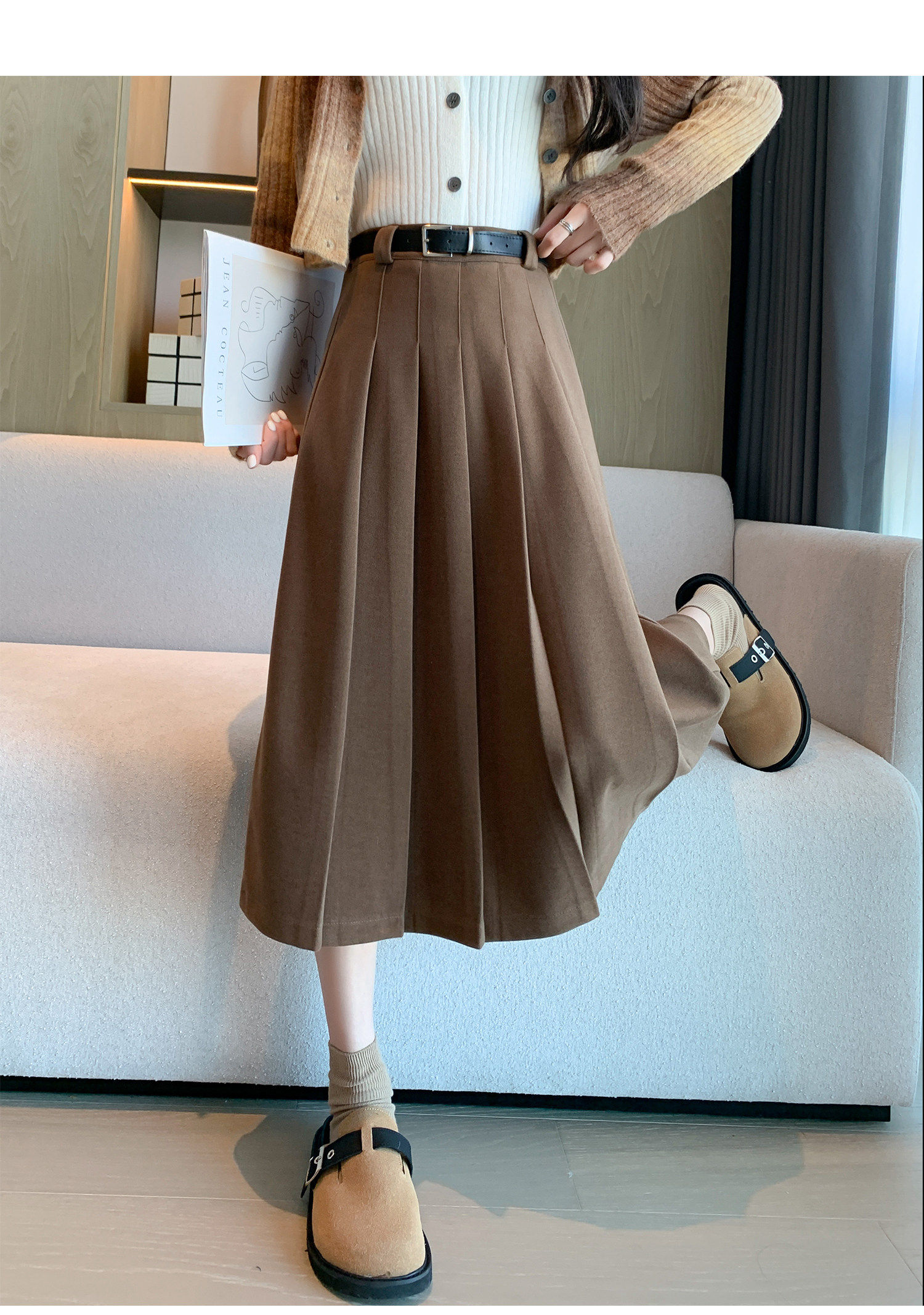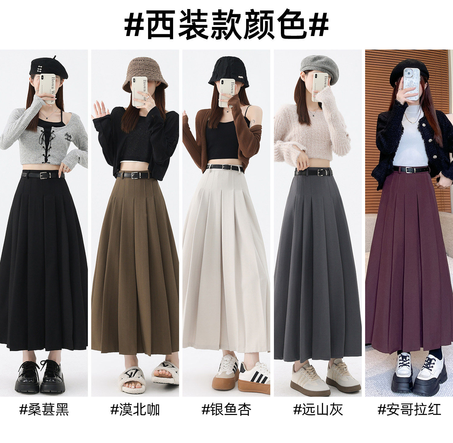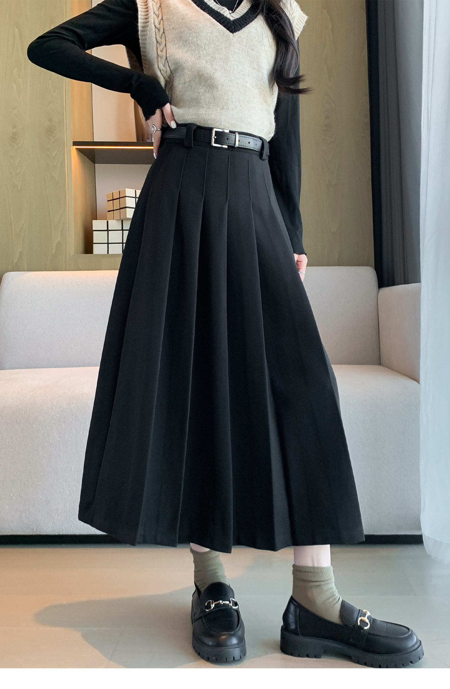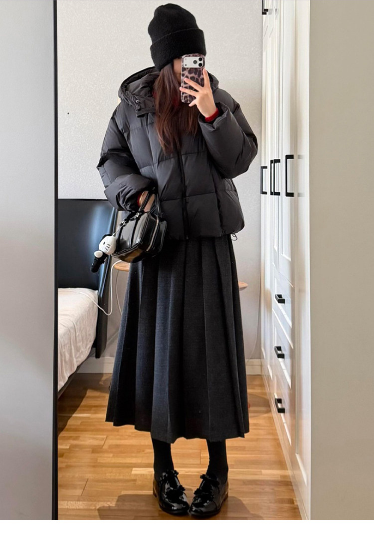 美拉德风毛呢百褶裙女秋冬新款高腰遮胯显瘦压褶a字中长款半身裙聚