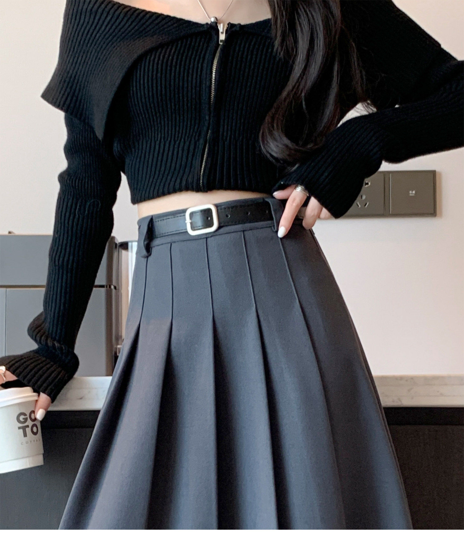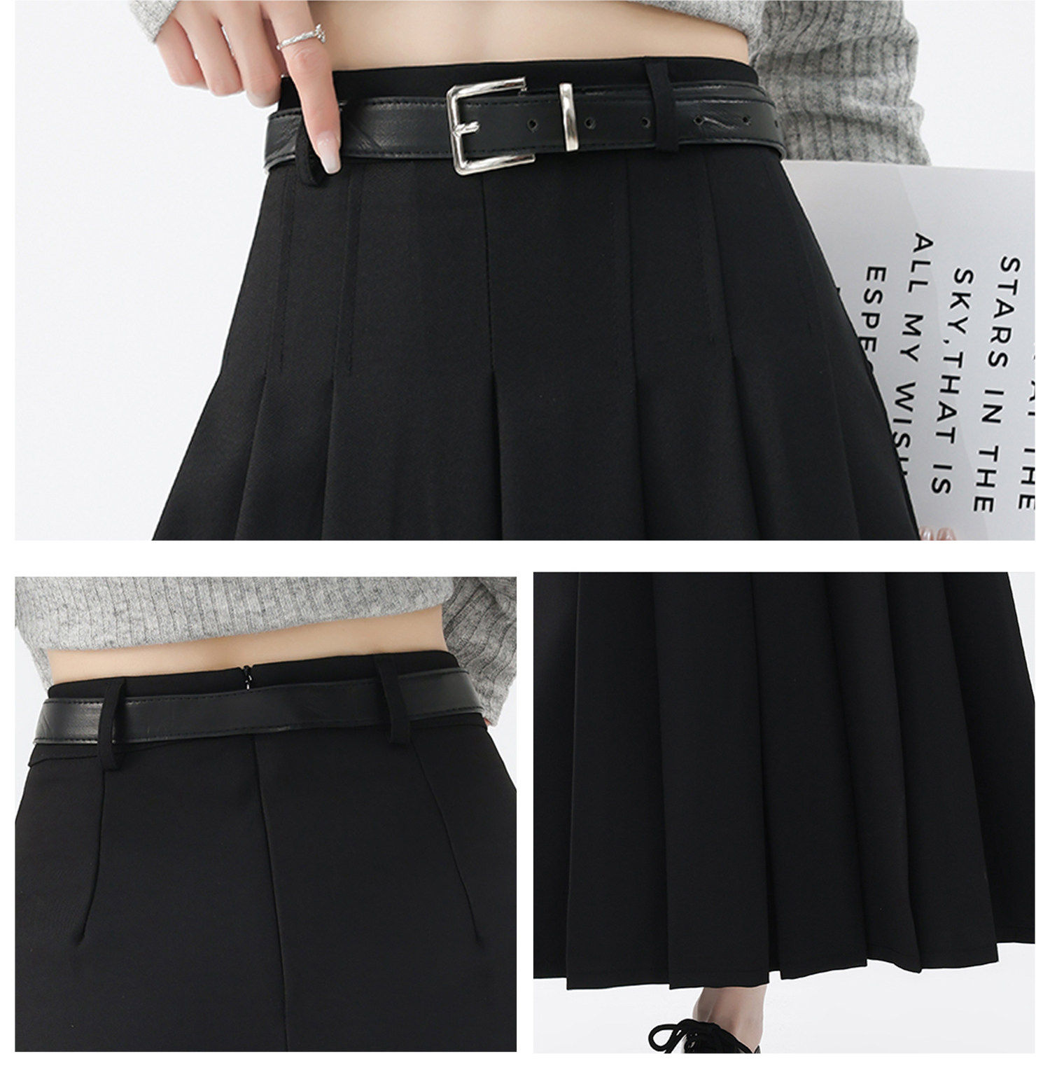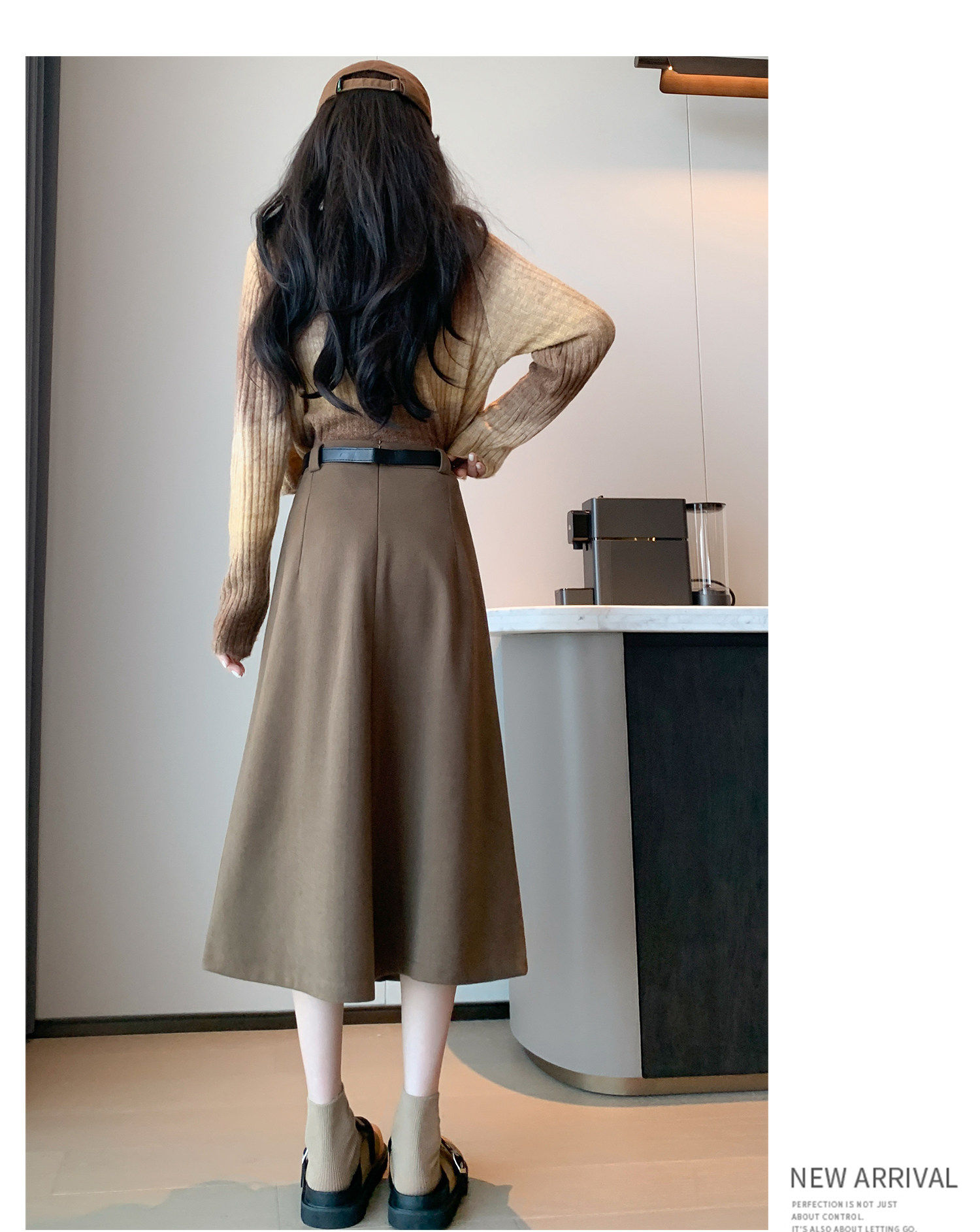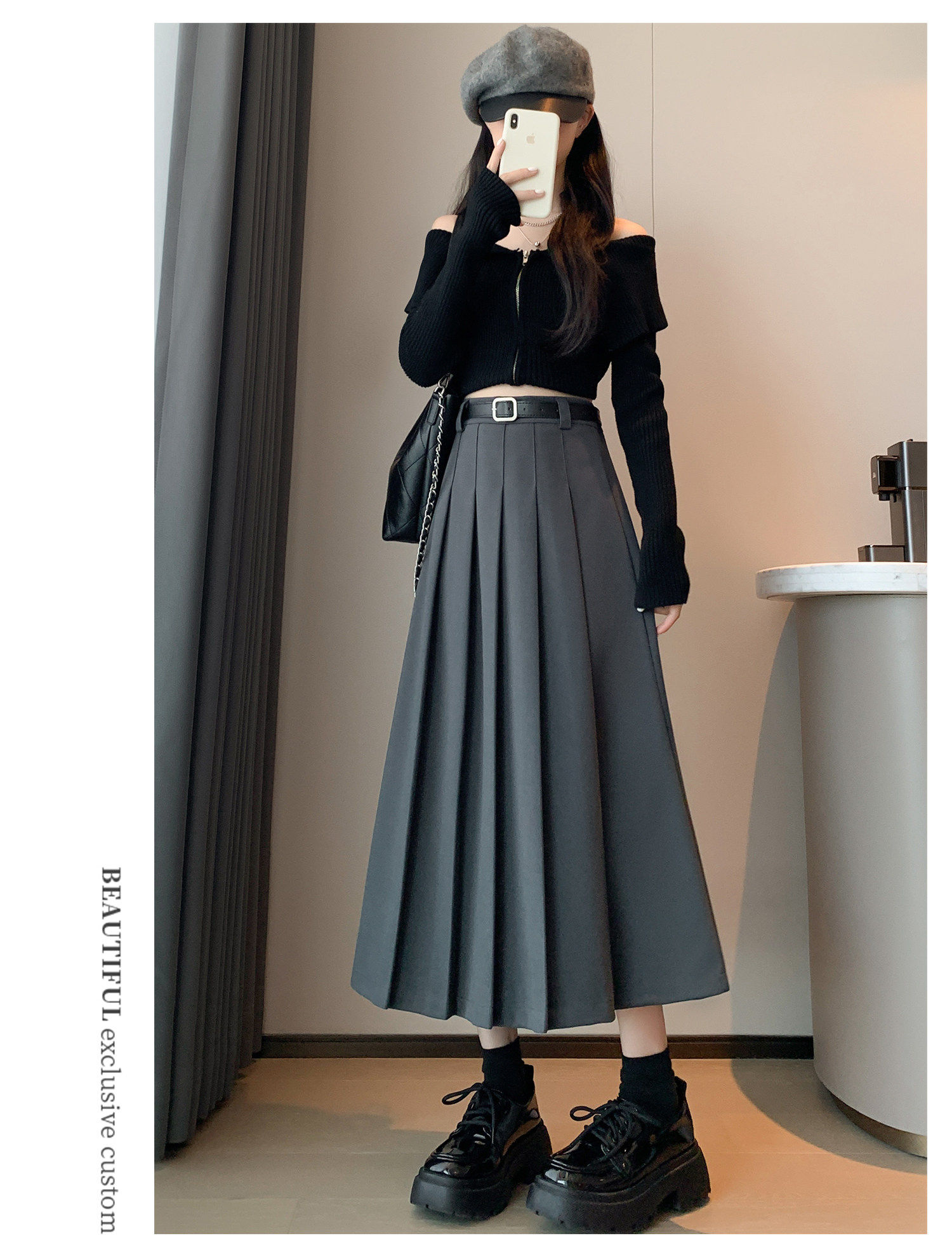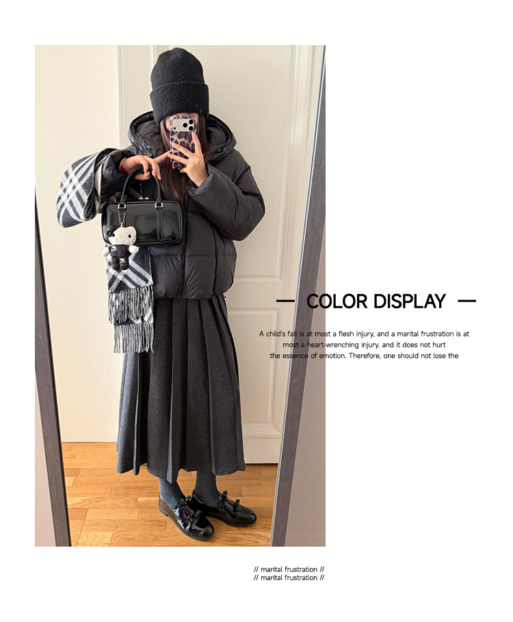 美拉德风毛呢百褶裙女秋冬新款高腰遮胯显瘦压褶a字中长款半身裙聚