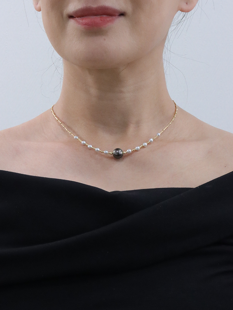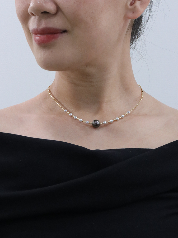 【挚友限定】竹节-18k金akoya/大溪地铂金灰珍珠项链 4-11mm
