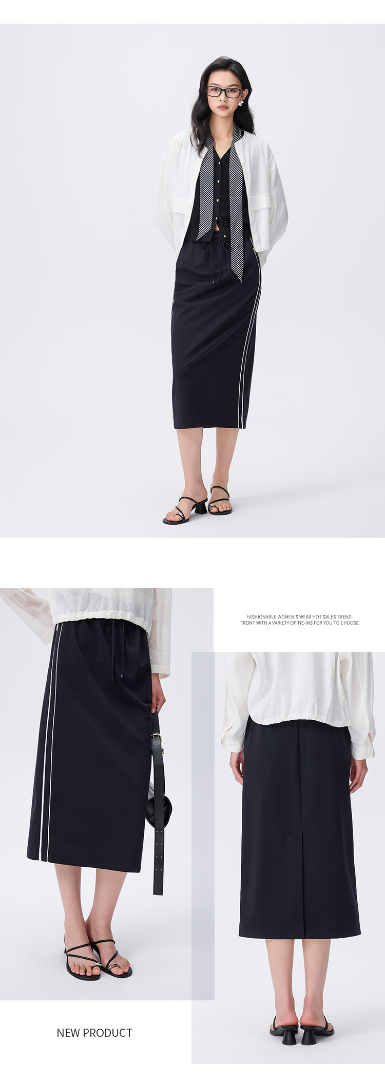 【商场同款】CNS6418 “ 休闲风半裙 ” 舒适好穿有弹力 侧条增加动感更显腿长