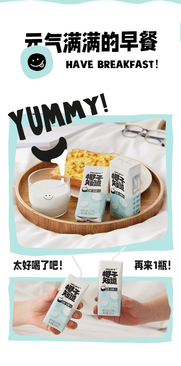 椰子知道 0糖鲜椰汁 200ml 多规格组合