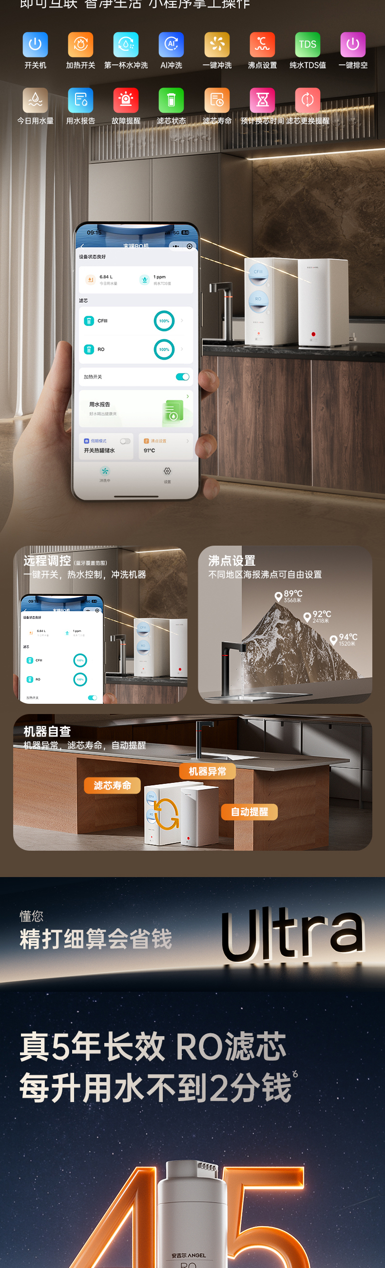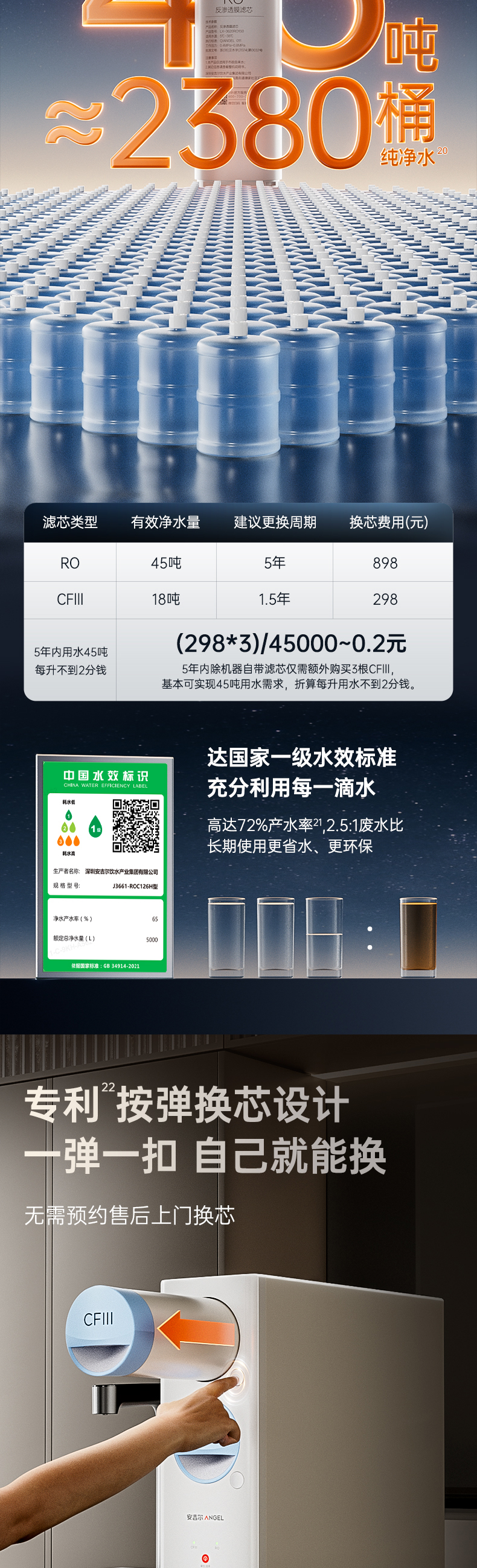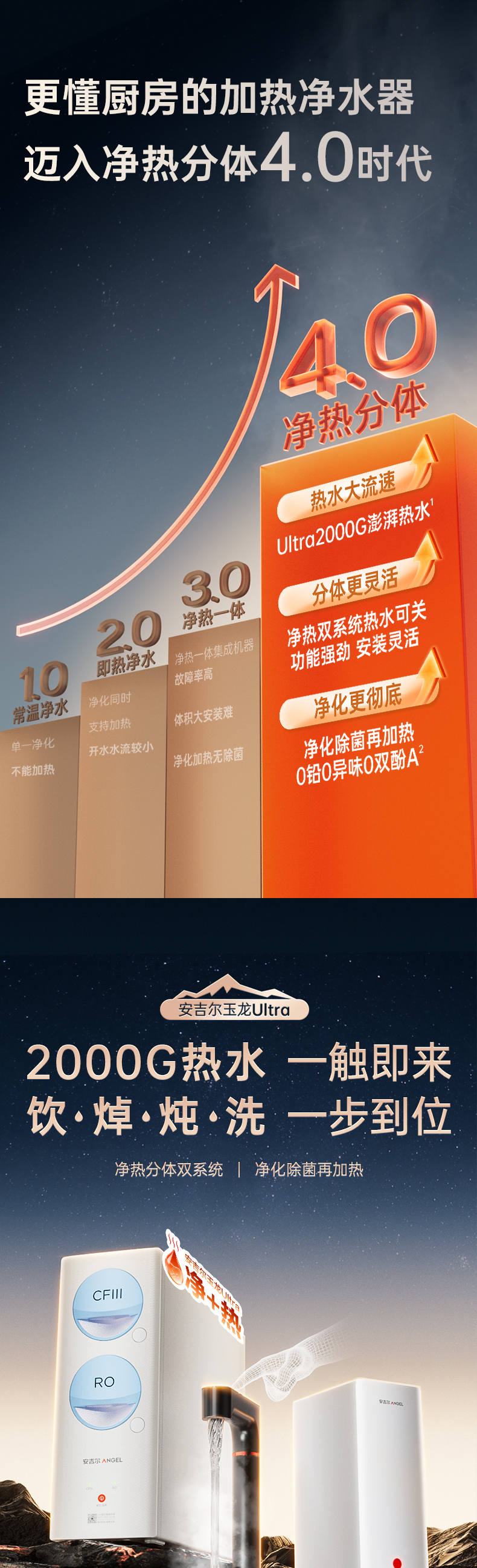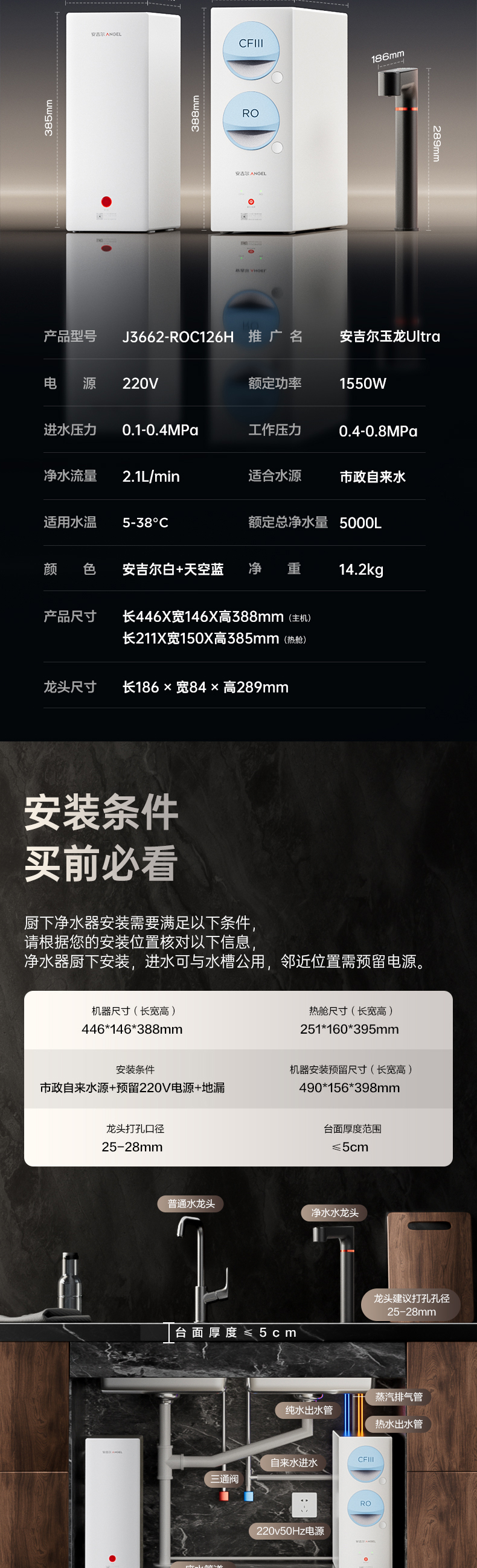 安吉尔E-Tech3800 净水器反渗透RO膜家用直饮