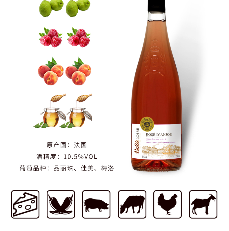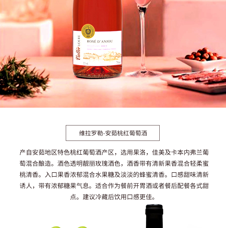 【双支特惠装】维拉罗勒-安茹桃红葡萄酒 Vallee Loire Rose d'Anjou 750ml*2