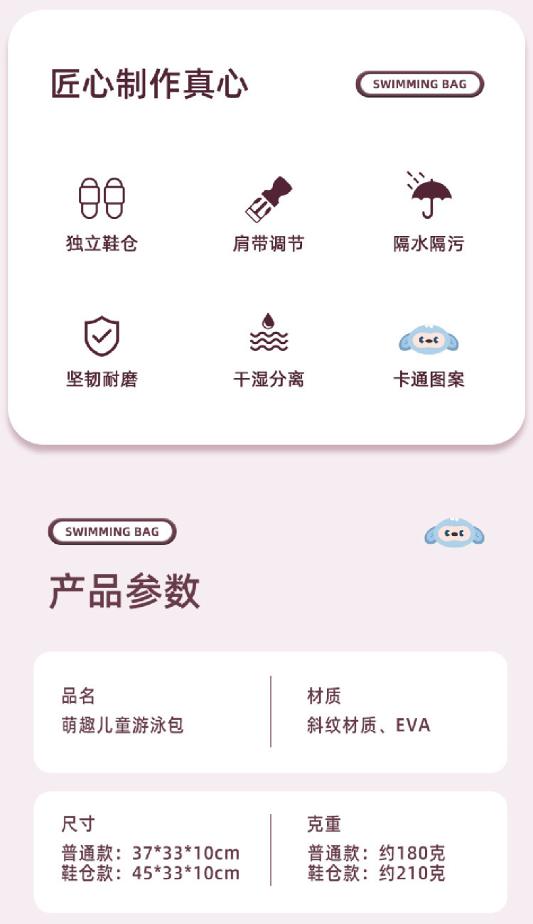 【干湿分离包包】2025夏季卡通儿童干背包带鞋仓 泳衣包收纳袋旅行沙滩包双肩包