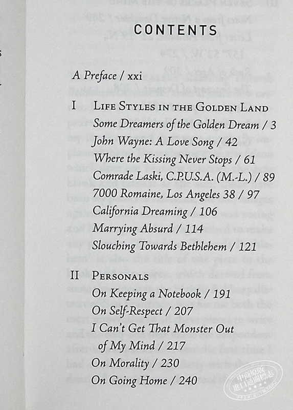 琼 狄迪恩 向伯利恒跋涉 Slouching Towards Bethlehem Essays英文原版 Joan Didion