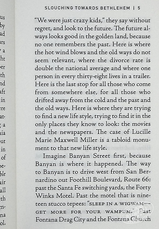 琼-迪迪安的一部非虚构作品《懒洋洋地走向伯利恒》被认为是美国写作的一个分水岭。这部作品于1968年出版,被评论界称赞为 "这个国家写得极好的散文之一"。