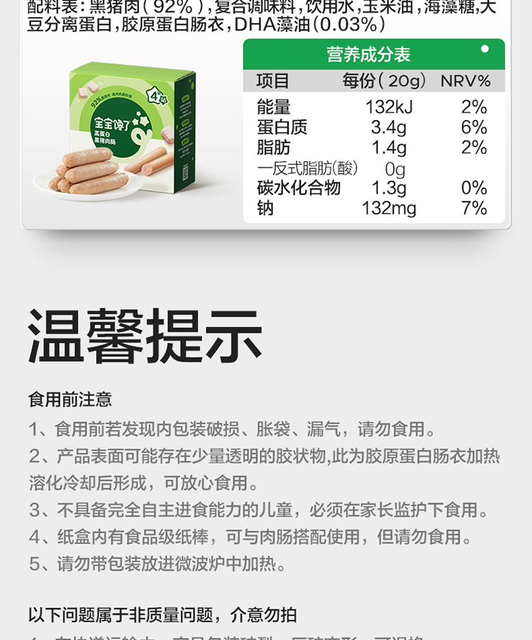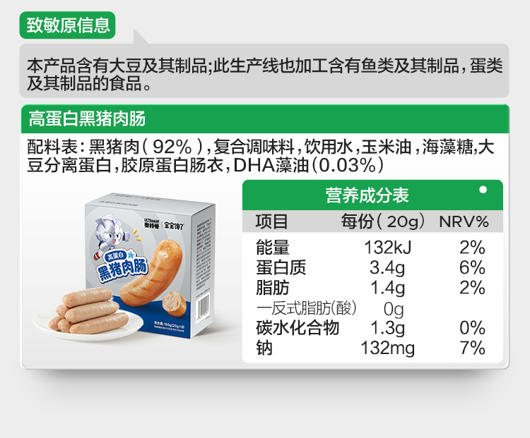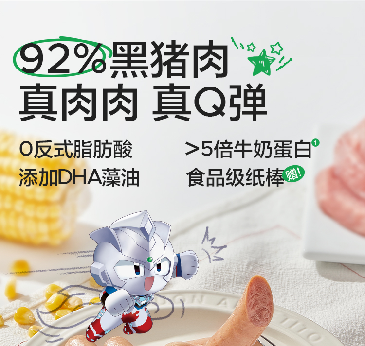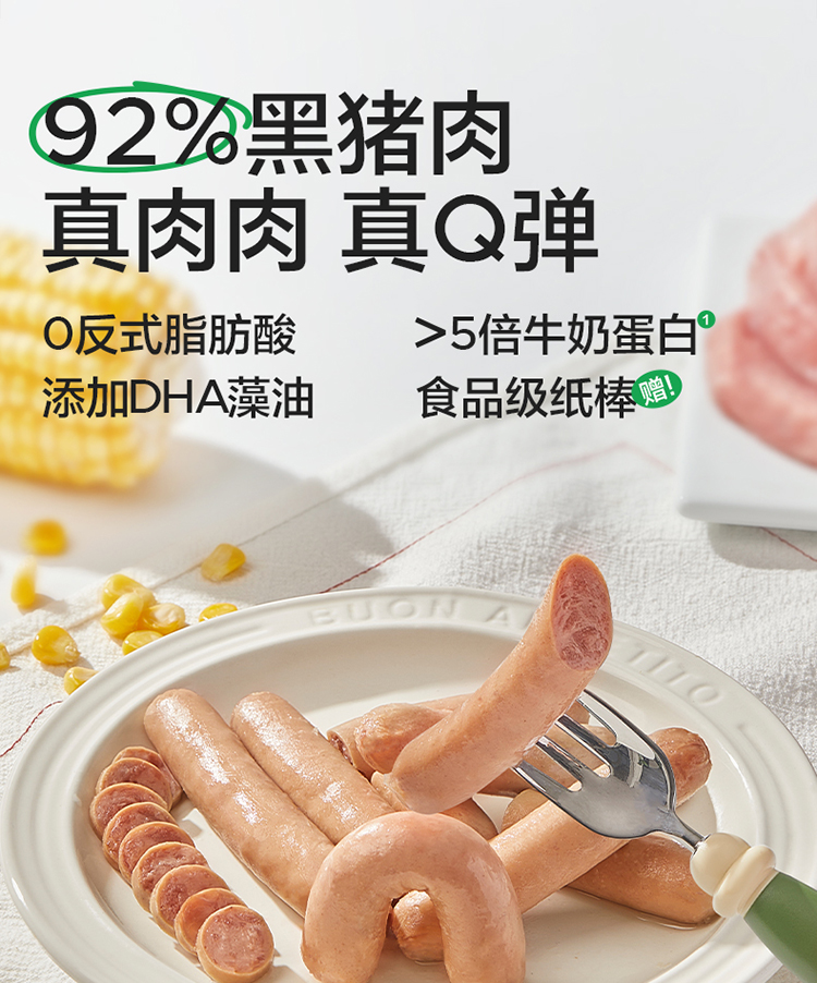 【宝宝馋了】92%黑猪肉肠儿童火腿烤肠,送12月龄宝宝辅食食谱