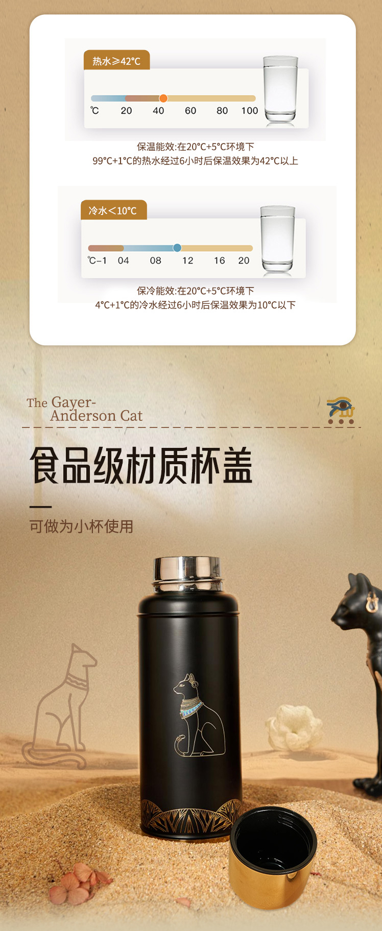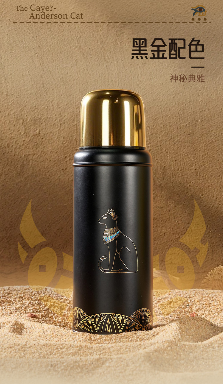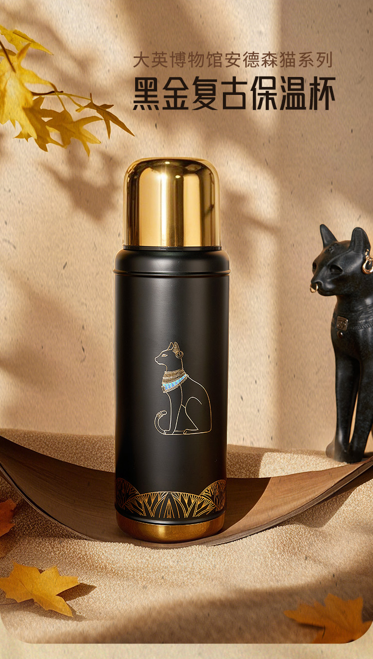 大英博物馆 盖亚·安德森猫系列 黑金复古保温杯