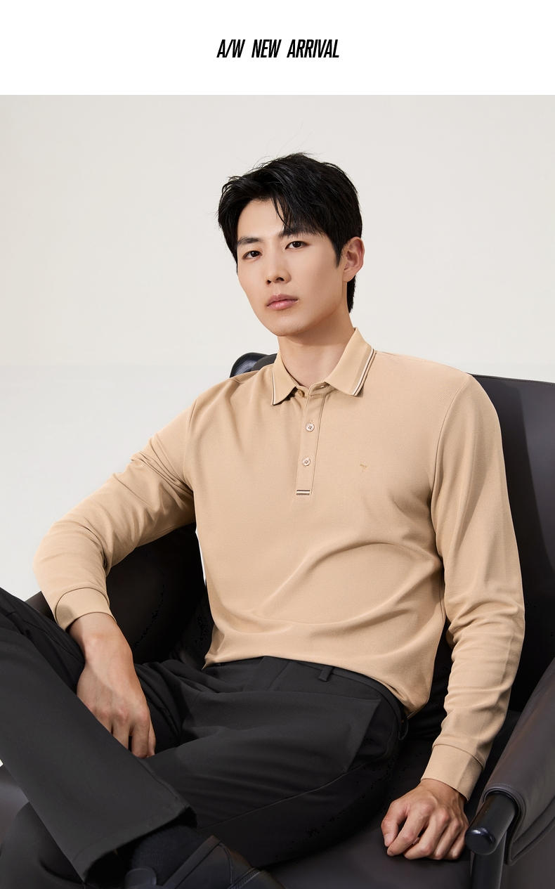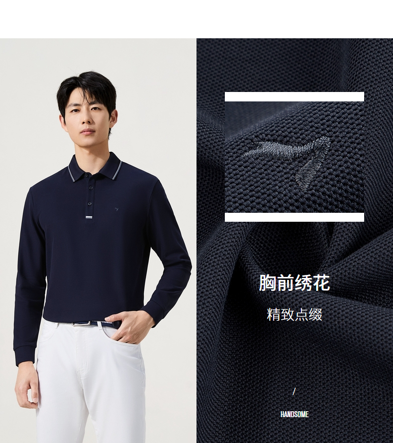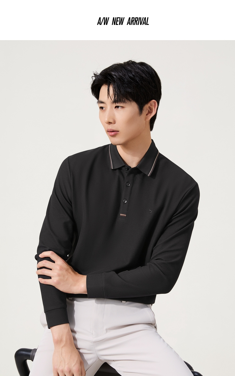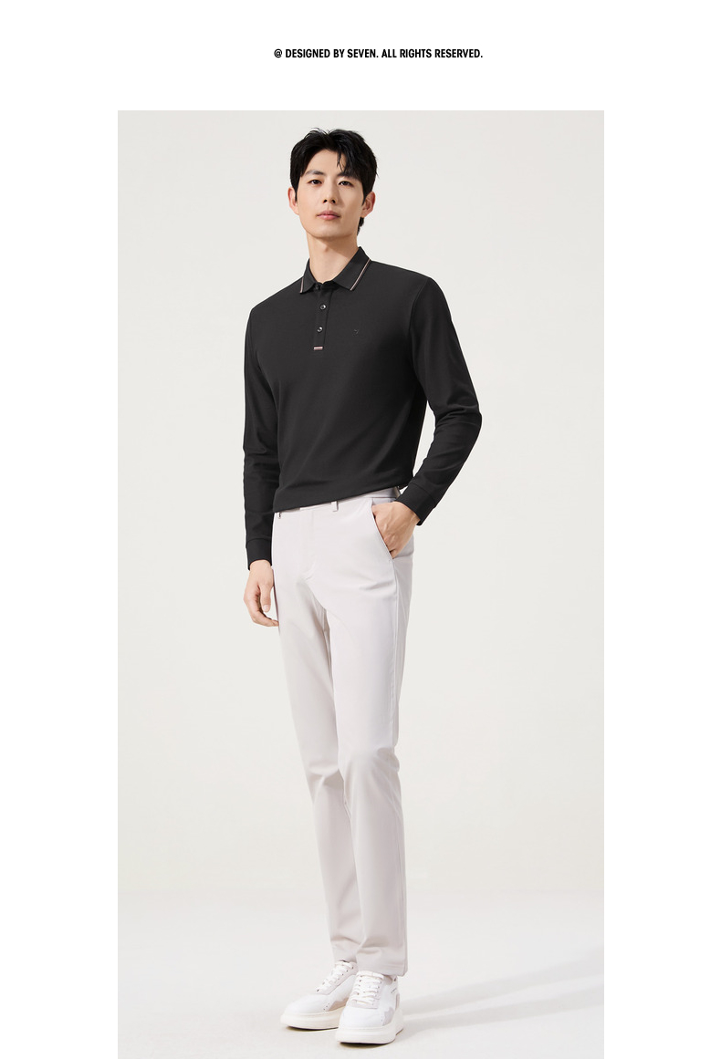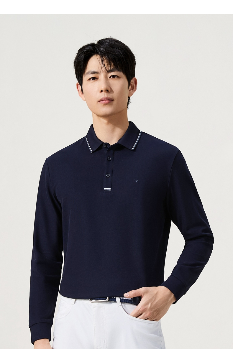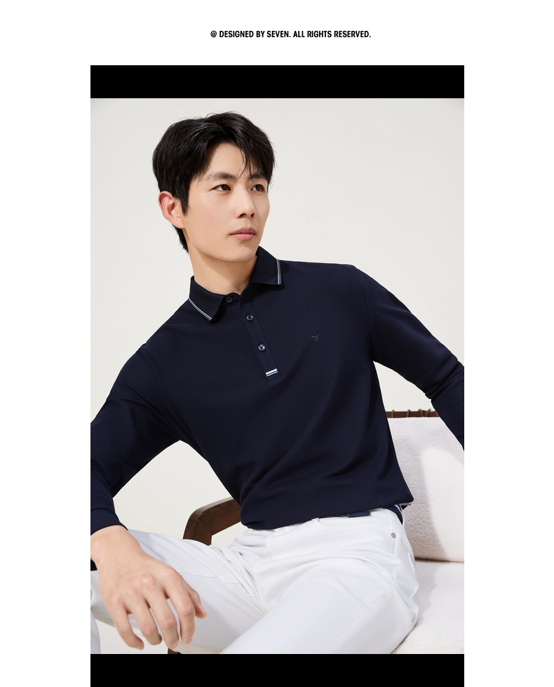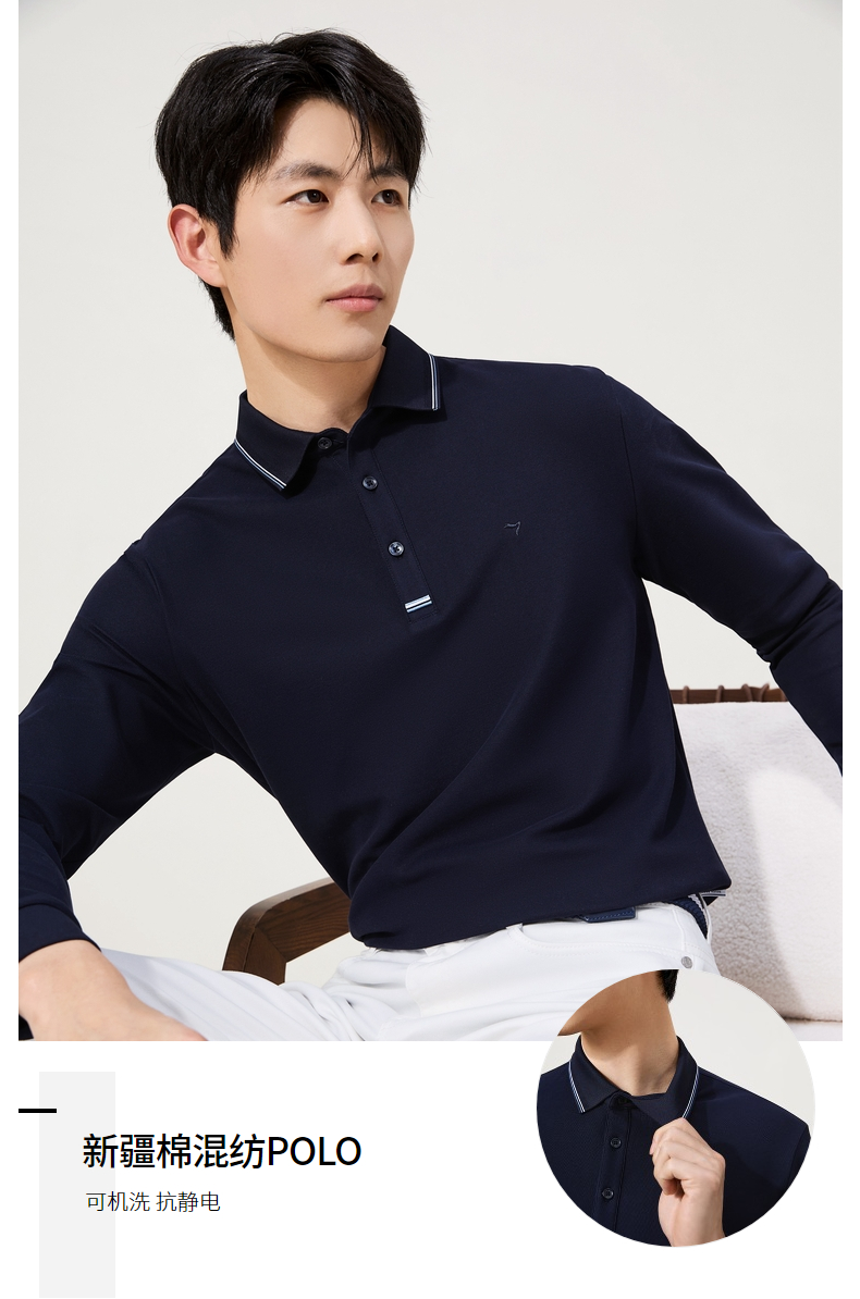 【7A抗菌/2A防螨/不变形领】柒牌男士长袖polo衫秋季商务休闲T恤129T70310