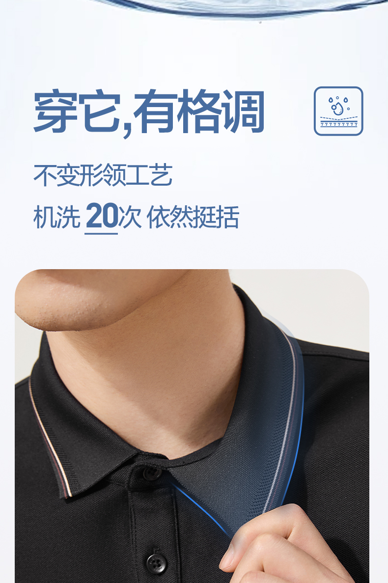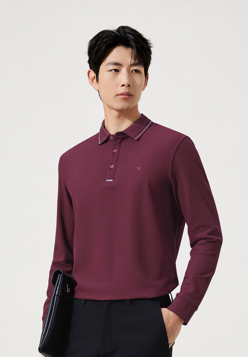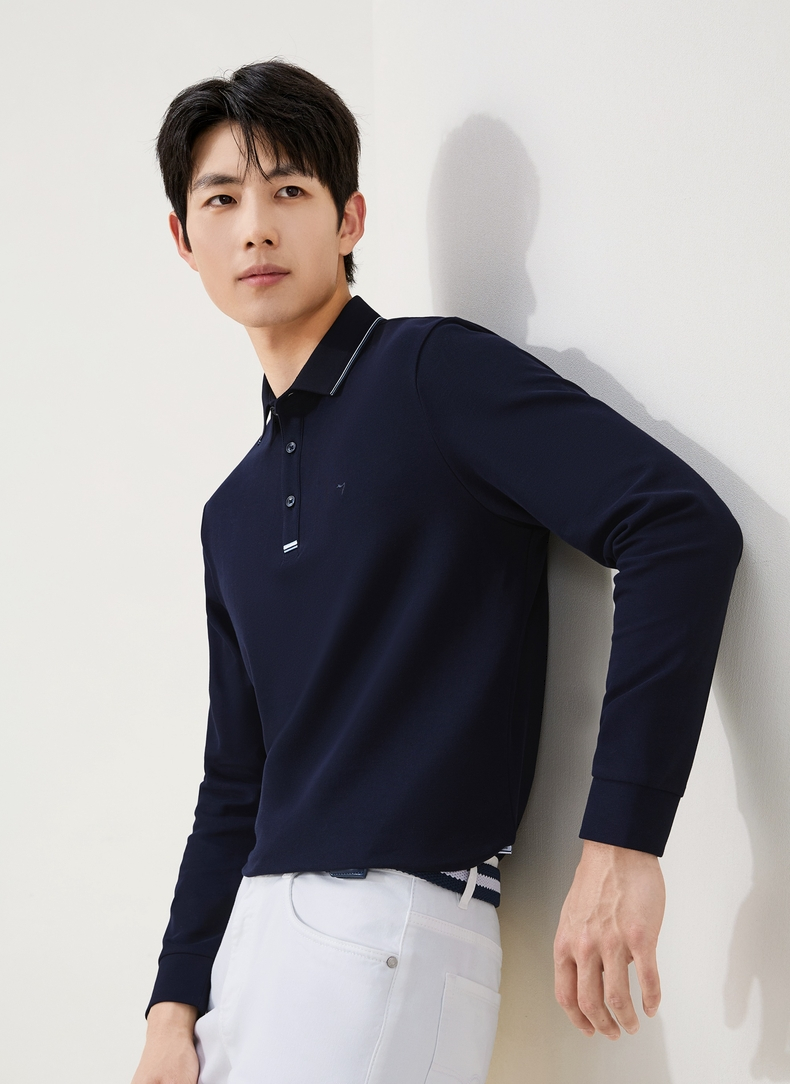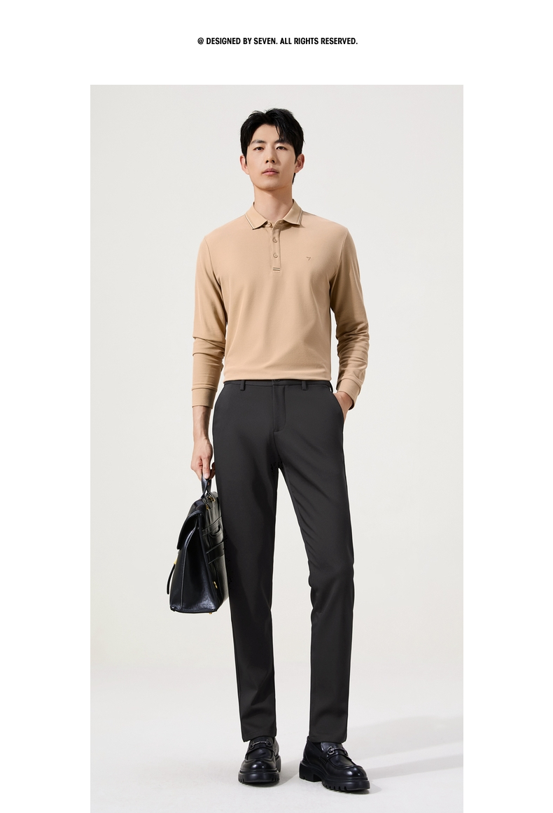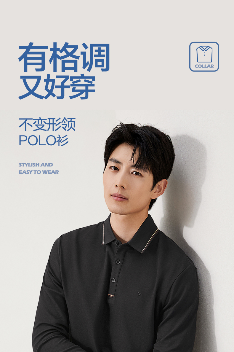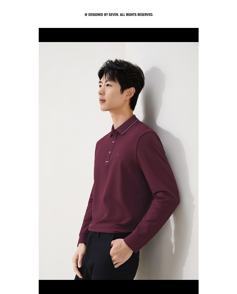 【7A抗菌/2A防螨/不变形领】柒牌男士长袖polo衫秋季商务休闲T恤129T70310