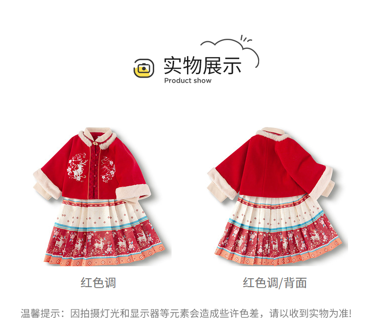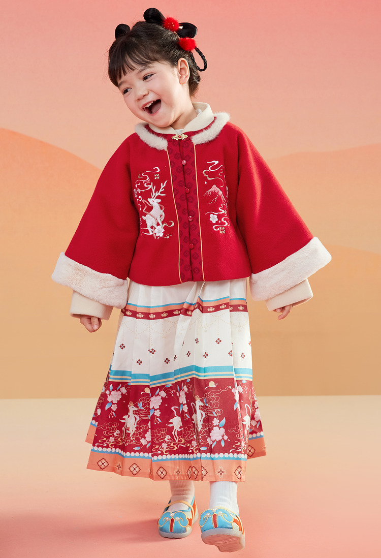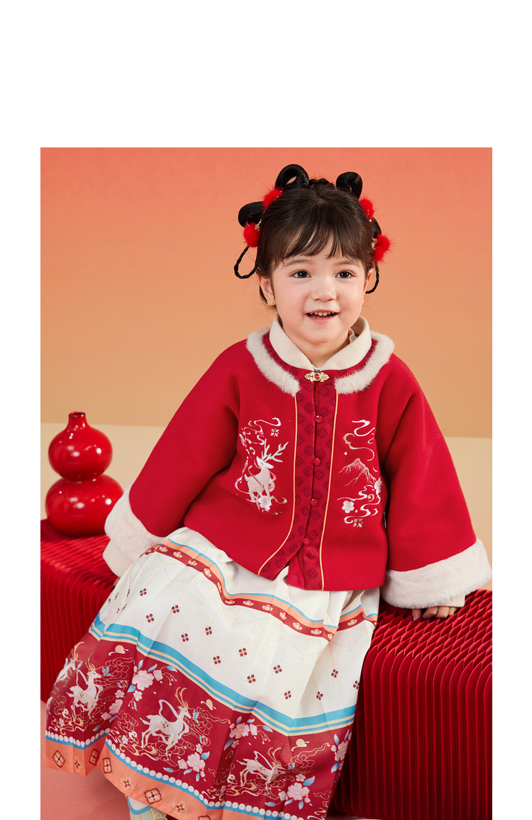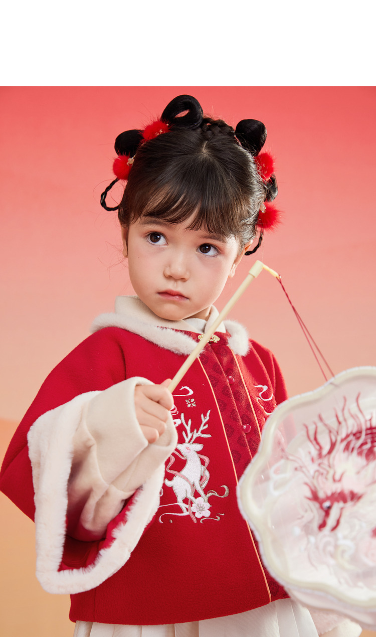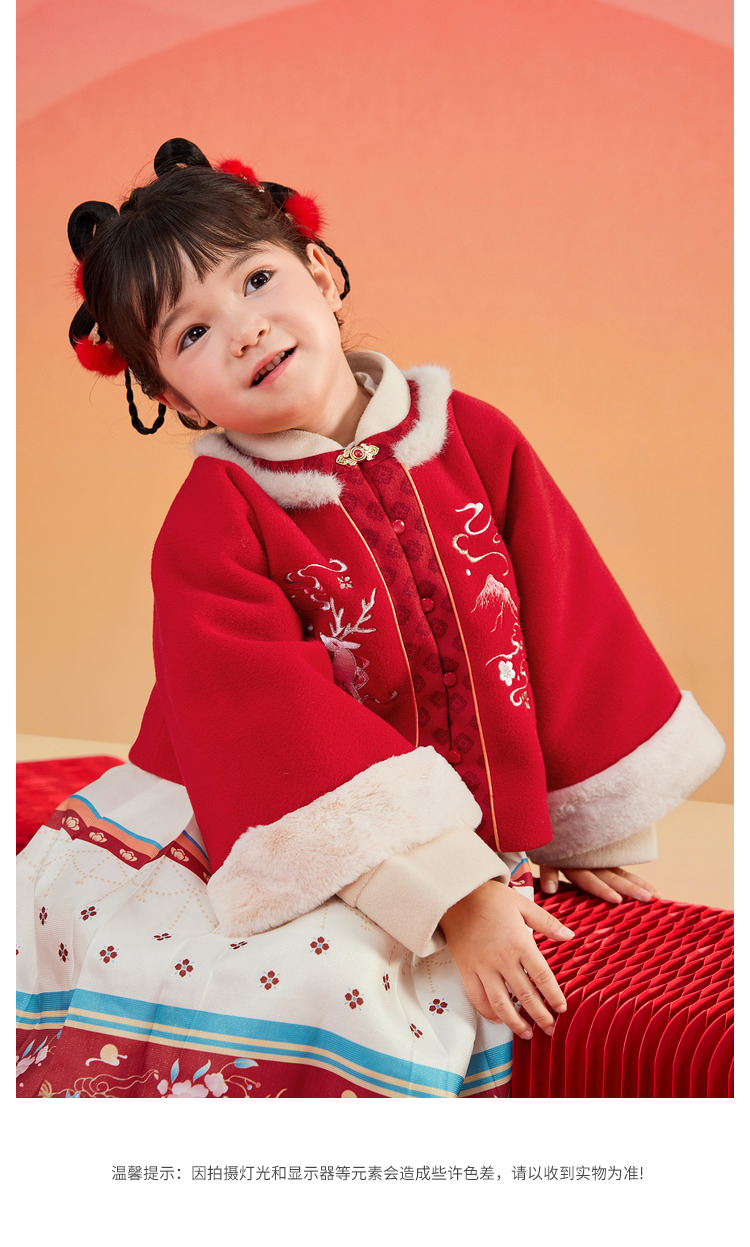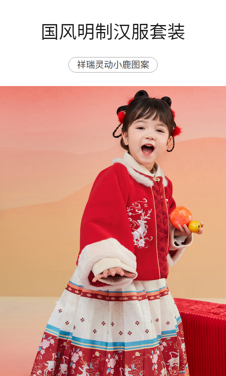 巴拉巴拉童装女童汉服套装秋冬新款新年季宝宝保暖红色拜年服