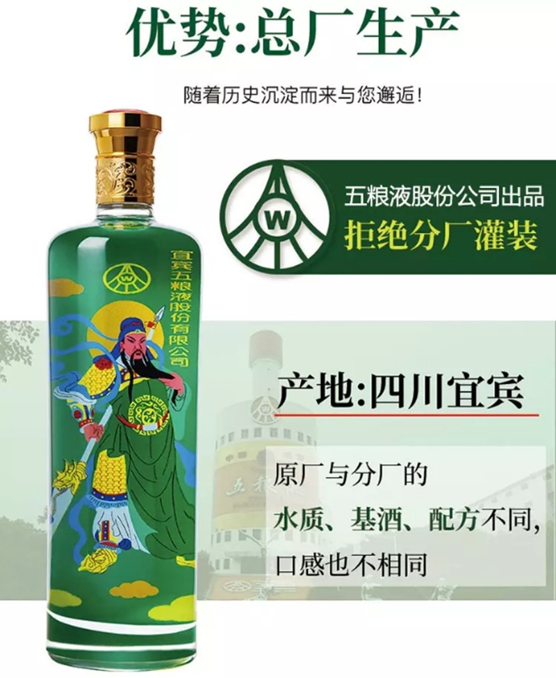 五粮液干一杯绵柔·关公白酒 浓香型 42度475ml 每2瓶送手提袋1个 送礼家宴聚餐用酒