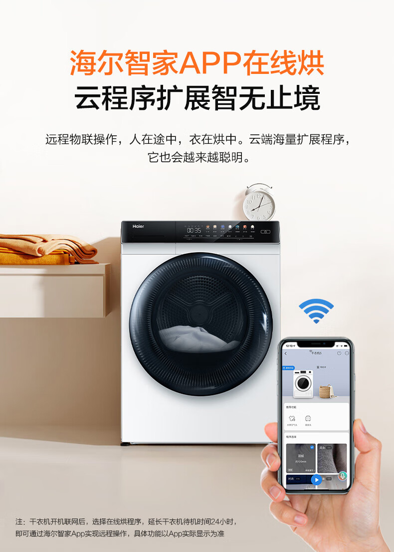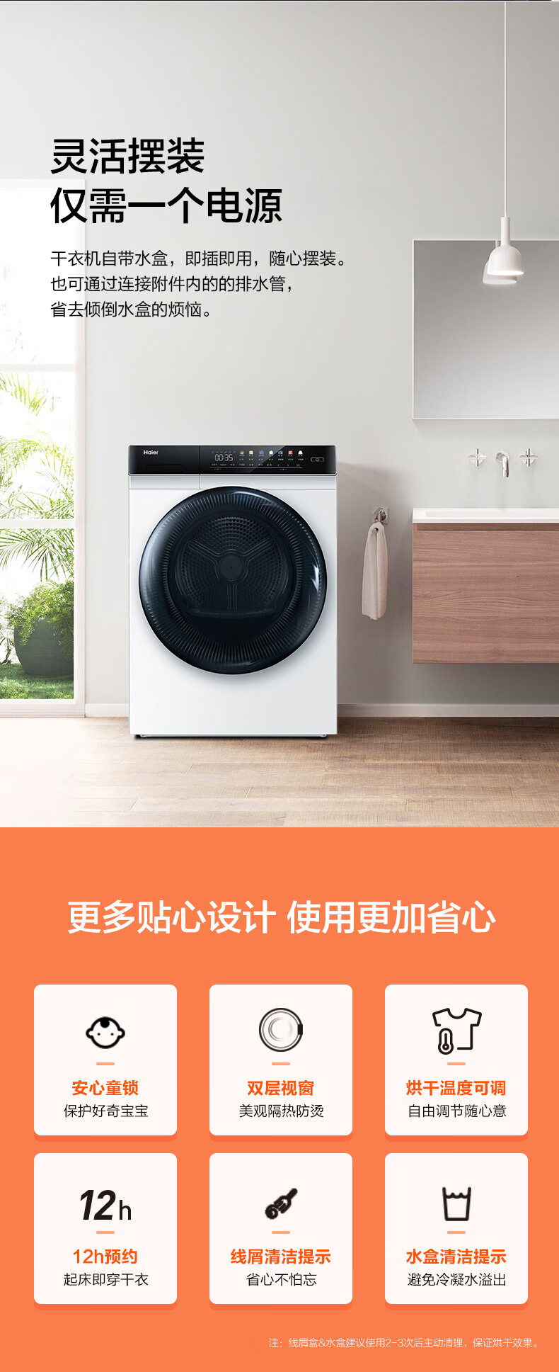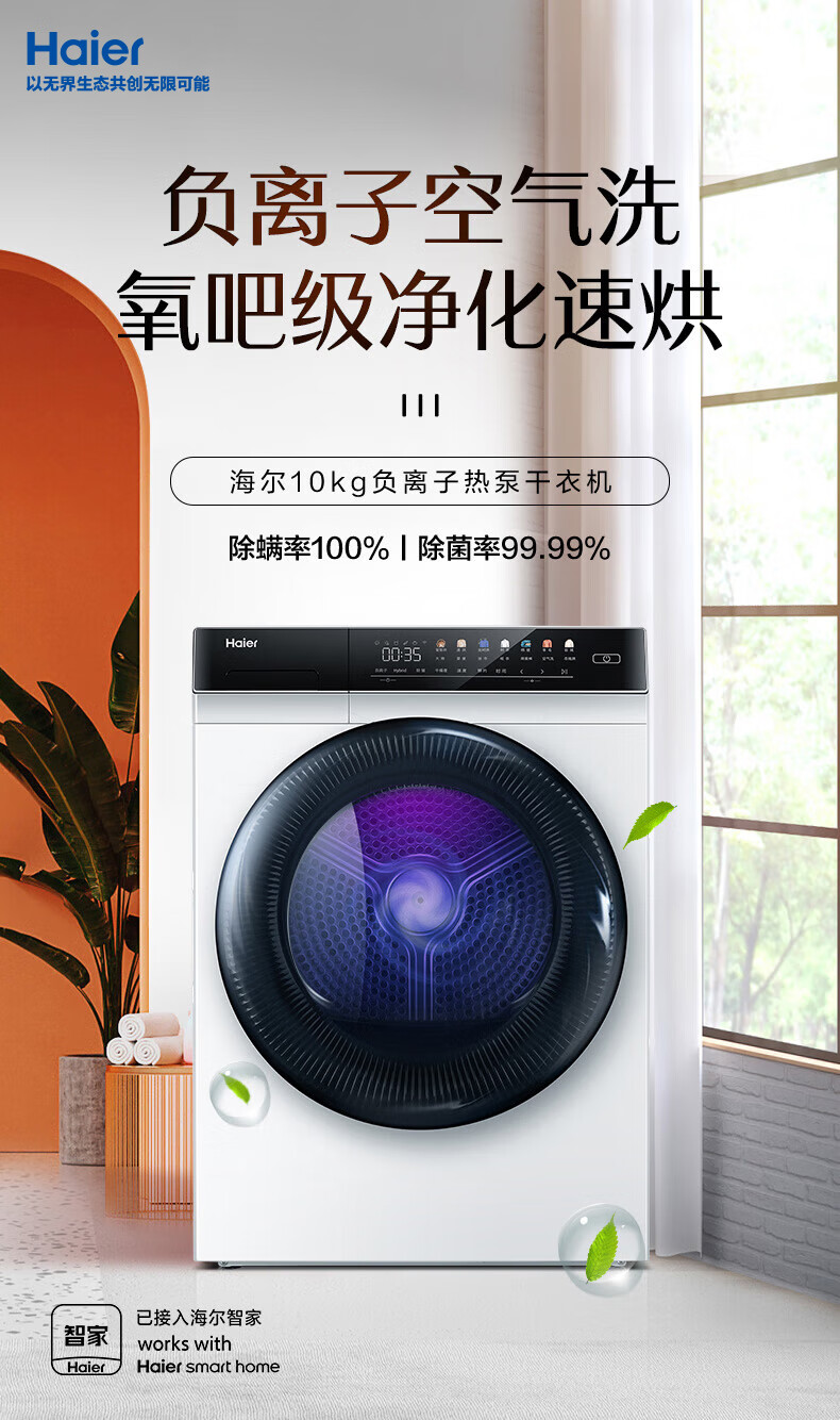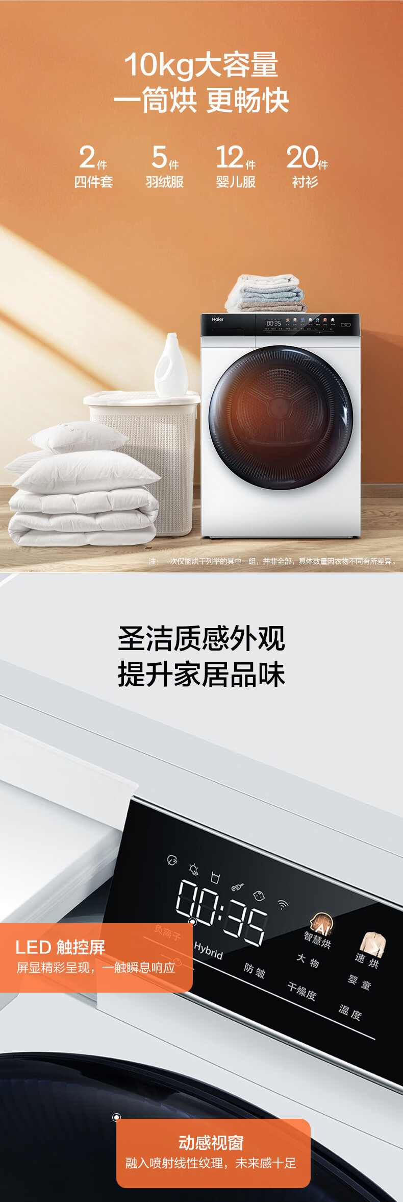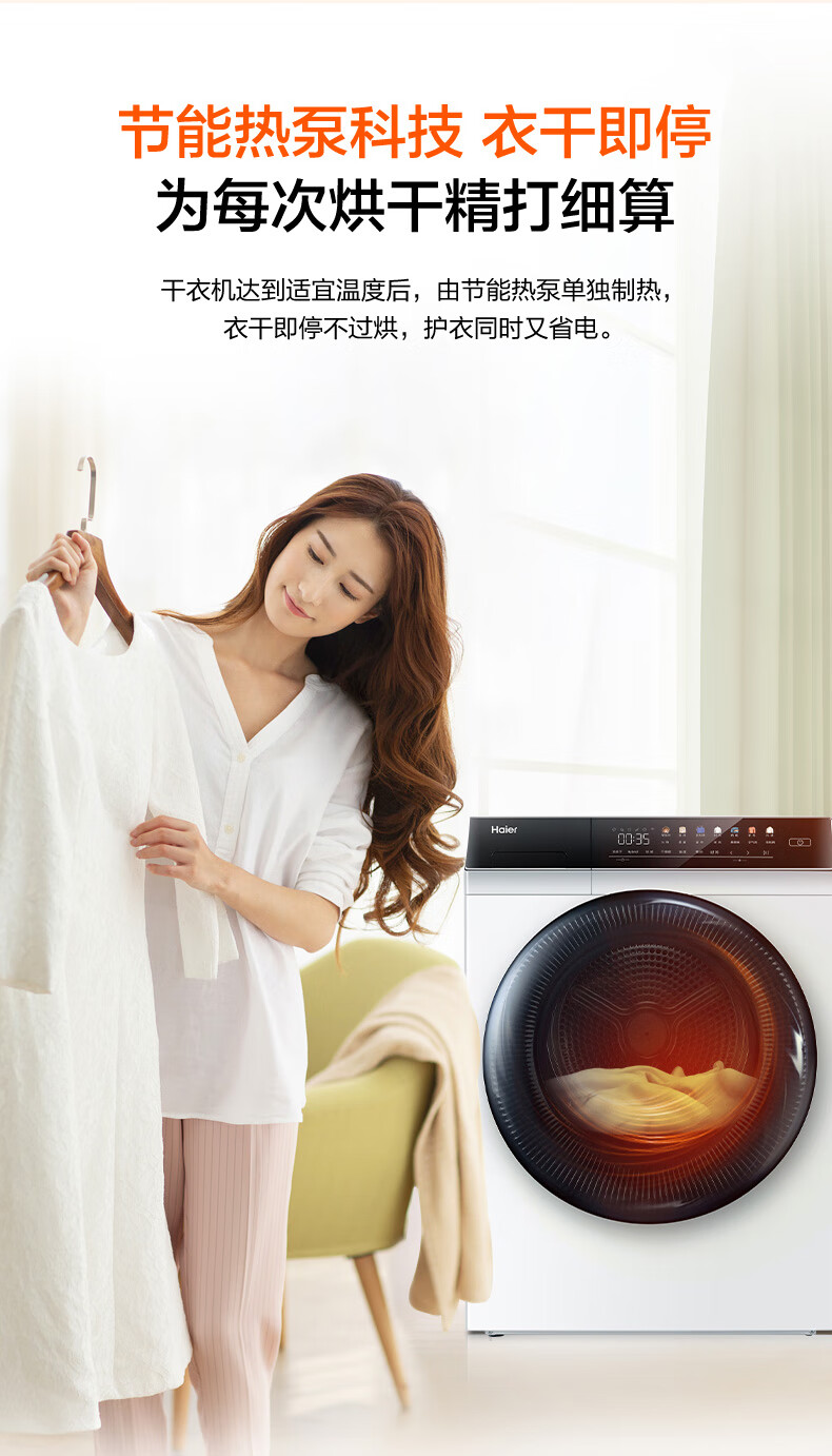海尔(Haier)晶彩烘干机家用 10公斤热泵干衣机 冰雪白色 源头除毛屑 极速升温 MATE7W 以旧换新 冰雪白外观 FMATE7WU1