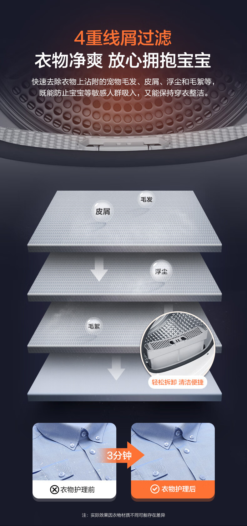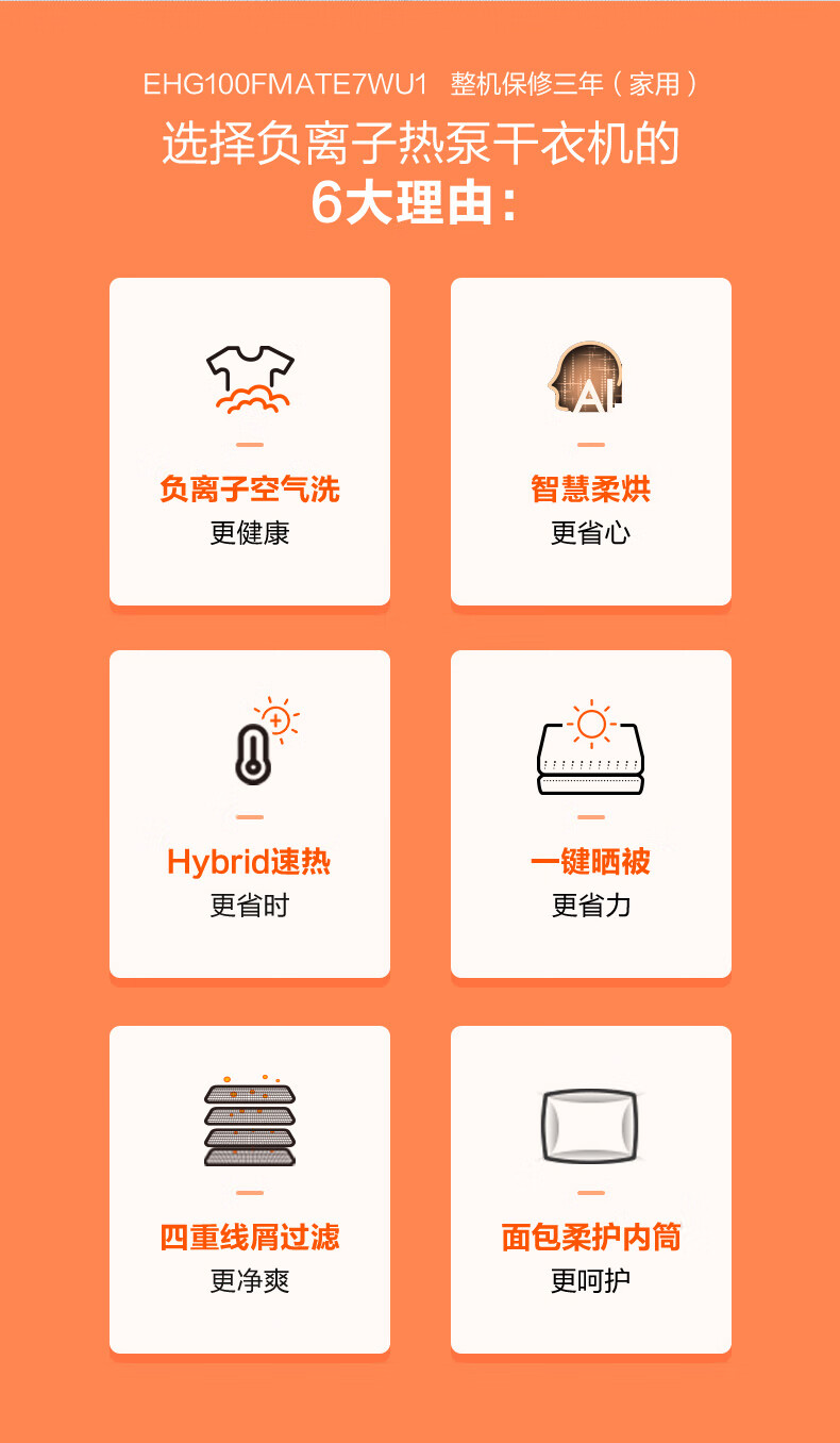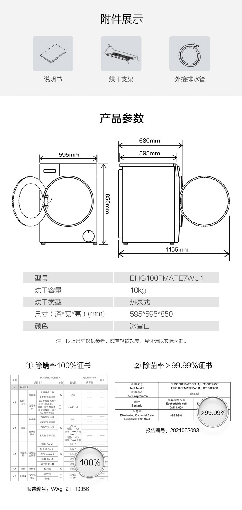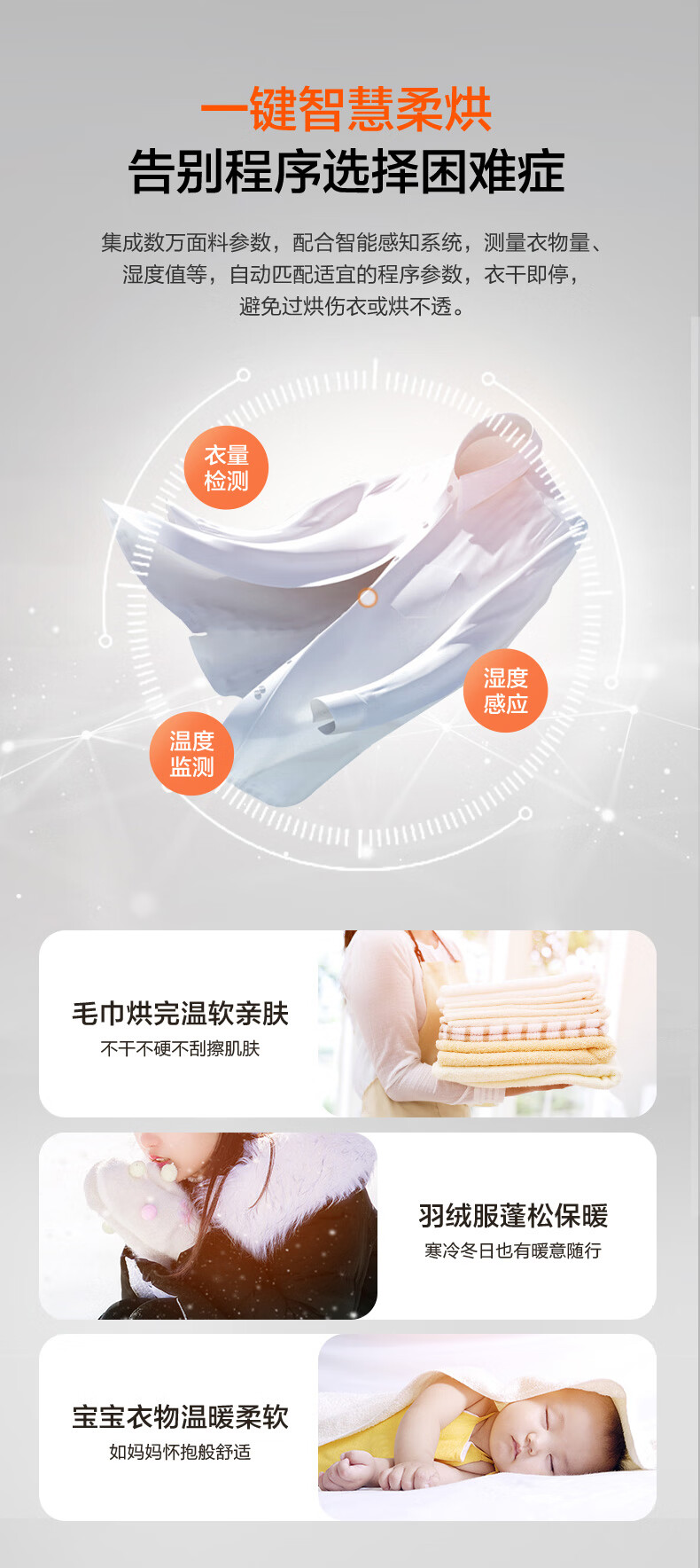 海尔(Haier)晶彩烘干机家用 10公斤热泵干衣机 冰雪白色 源头除毛屑 极速升温 MATE7W 以旧换新 冰雪白外观 FMATE7WU1