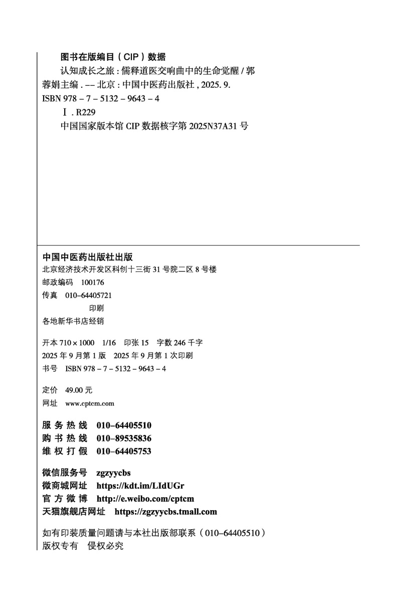 认知成长之旅 儒释道医交响曲中的生命觉醒 郭蓉娟 本书既适用于疾病人群的心理干预 也可助力健康人群的认知提升中国中医药出版社