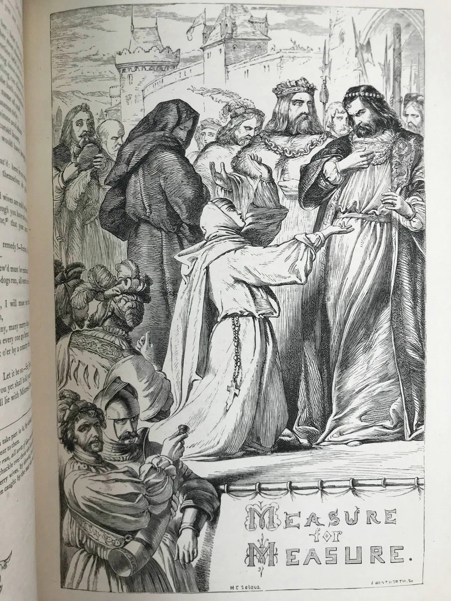 约19世纪中后期 莎士比亚戏剧集(全3卷) 塞卢斯数百幅版画插图 真皮精装16开