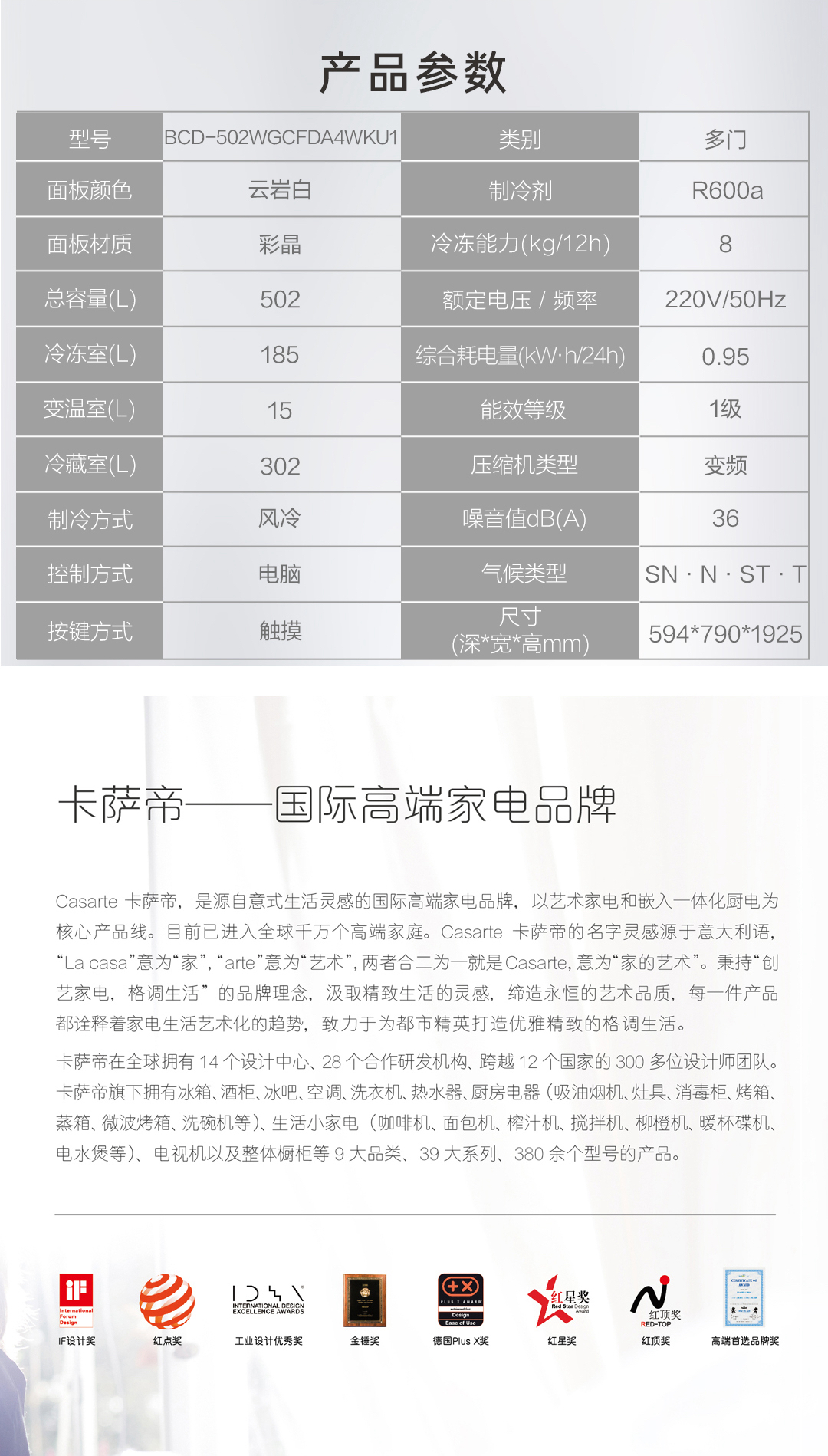 卡萨帝(Casarte)冰箱 BCD-502WGCFDA4WKU1