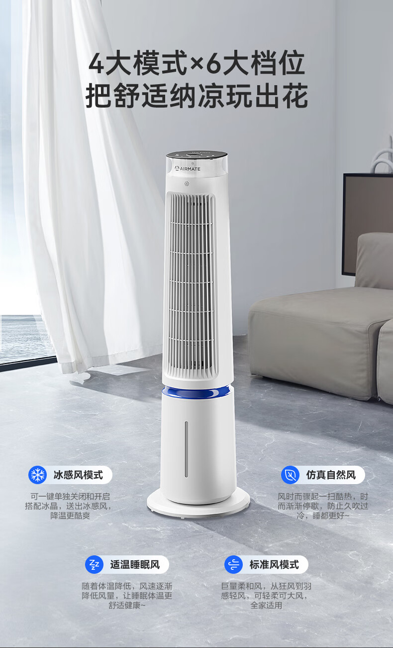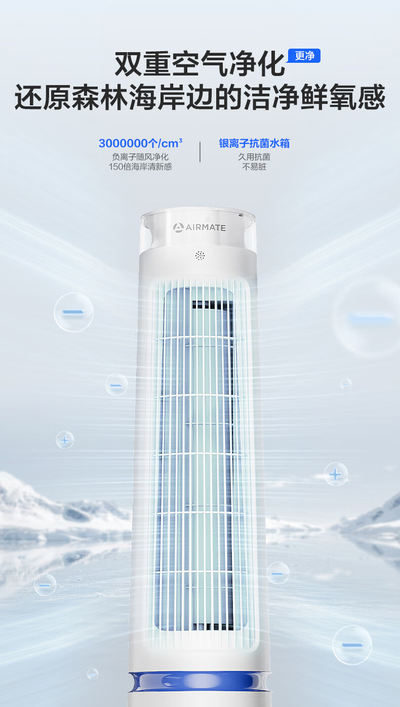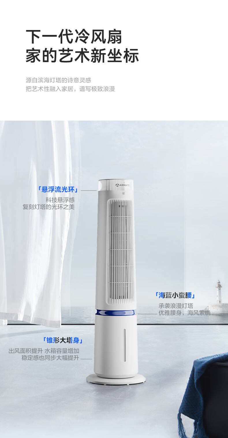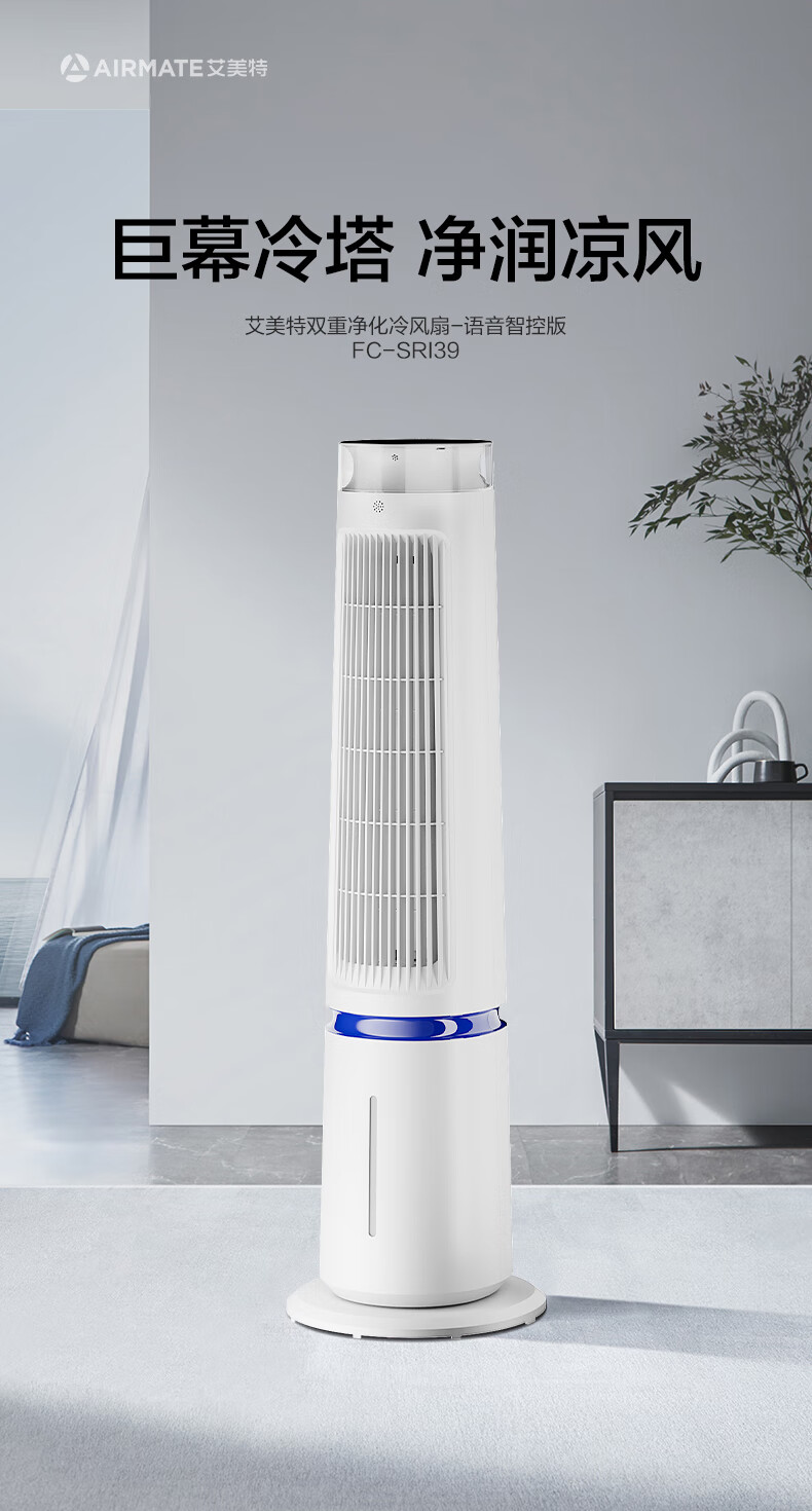 艾美特(AIRMATE)【百万负离子】灯塔冷风扇空调扇家用语音智能水冷塔扇柔风制冷电风扇落地扇加湿定时小空调 SRI39